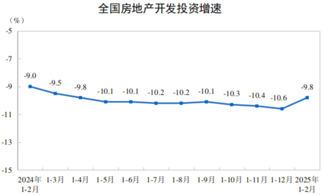 數(shù)據(jù)顯示,1-2月份全國房地產(chǎn)開發(fā)投資10720億元,同比下降9.8%,降幅比上年全年收窄0.8個(gè)百分點(diǎn);其中住宅投資8056億元,下降9.2%,降幅收窄1.3個(gè)百分點(diǎn)。