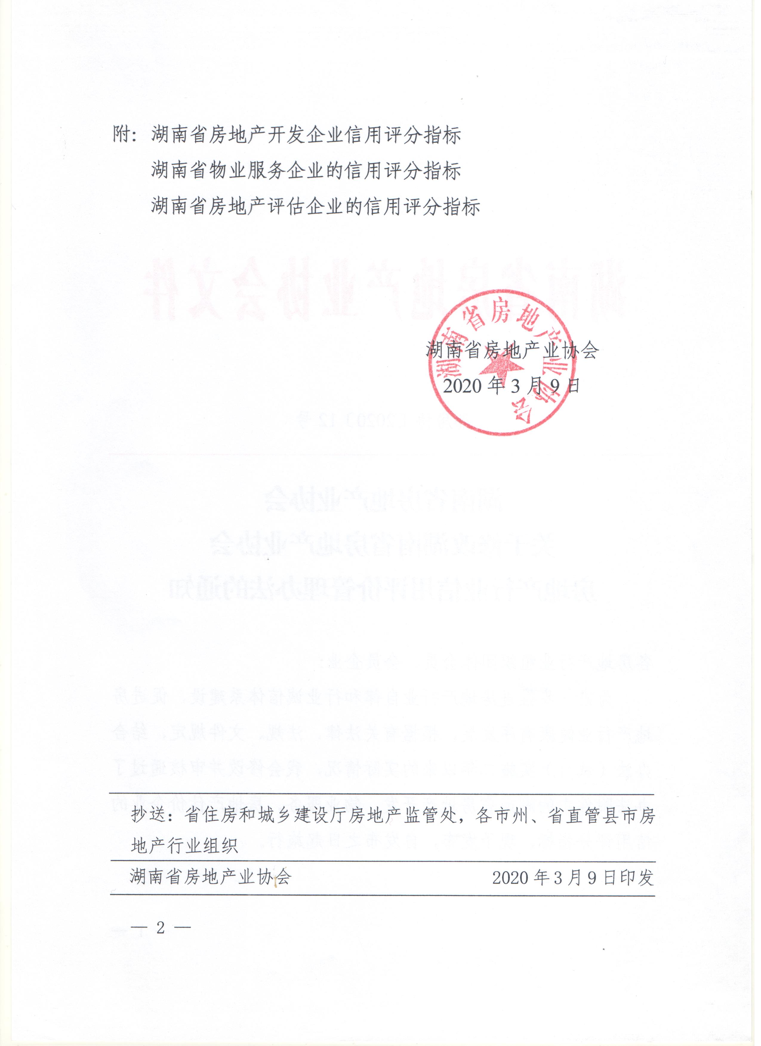 為進一步推進房地產(chǎn)行業(yè)自律和行業(yè)誠信體系建設(shè),促進房地產(chǎn)行業(yè)健康有序發(fā)展,根據(jù)有關(guān)法律、法規(guī)、文件規(guī)定,結(jié)合辦法(試行)實施二年以來的實際情況,我會修改并審核通過了辦法附件中的湖南省房地產(chǎn)開發(fā)、物業(yè)服務、房地產(chǎn)估價企業(yè)的信用評分指標,現(xiàn)予發(fā)布,自發(fā)布之日起施行。