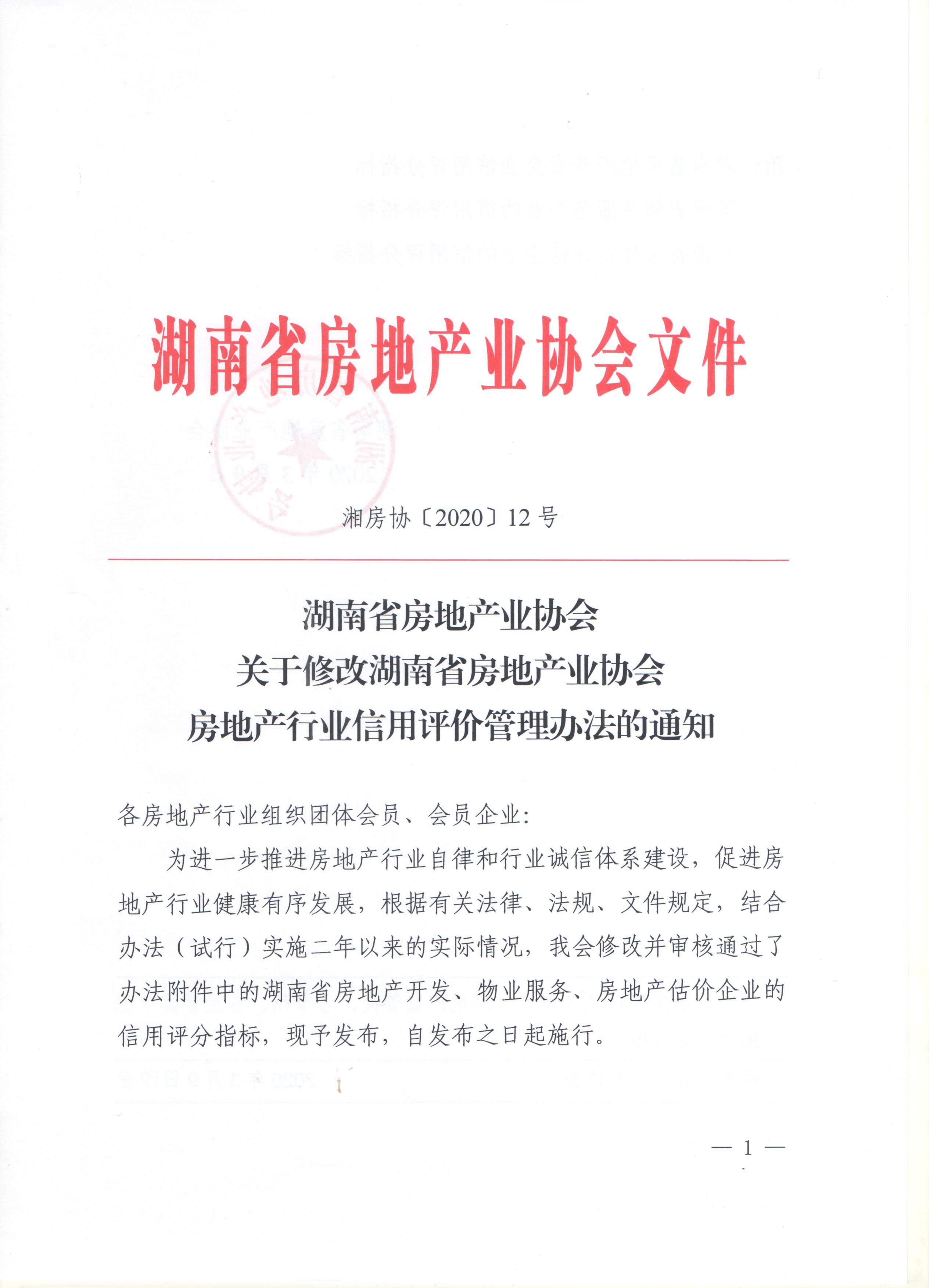 關(guān)于修改湖南省房地產(chǎn)業(yè)協(xié)會房地產(chǎn)行業(yè)信用評價管理辦法的通知