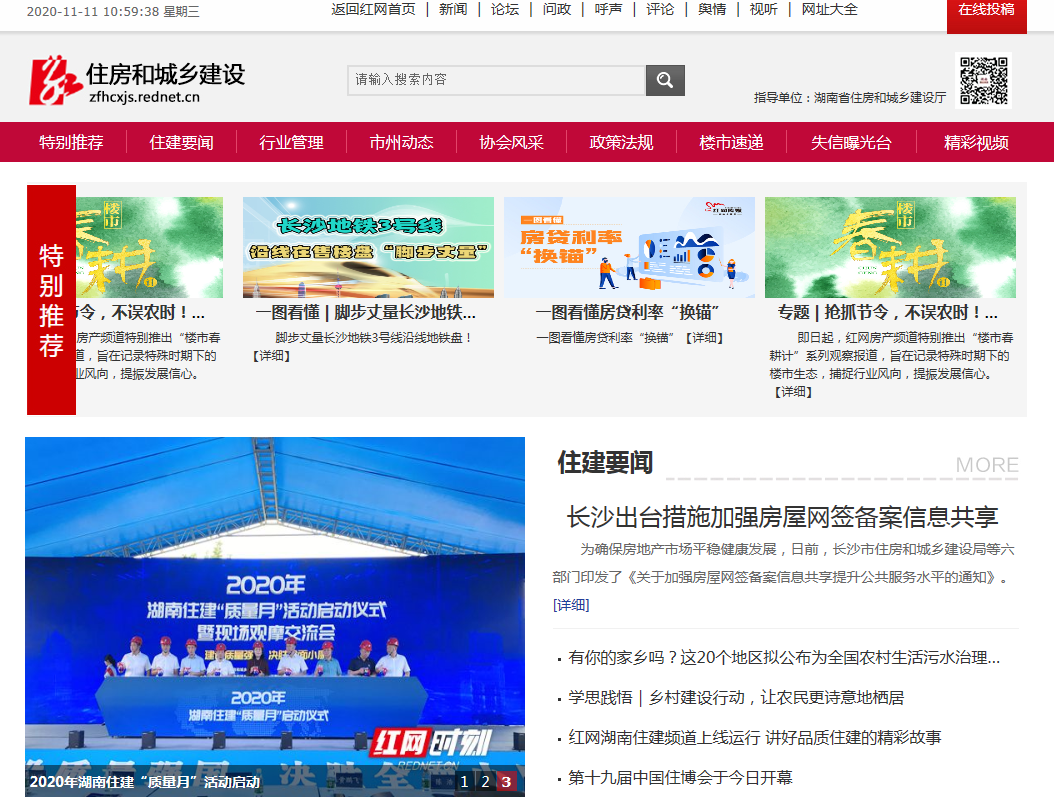 11月9日,由湖南住房和城鄉(xiāng)建設廳主辦、紅網承辦的紅網湖南住建頻道PC端上線運行。當天,時刻新聞客戶端湖南住建頻道也同步上線。這標志著湖南住建行業(yè)迎來了新的展示窗口。