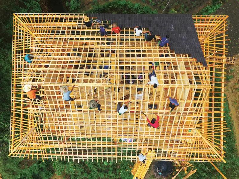 全面小康大家一起走。廣東廉江市和廣西融水苗族自治縣自2017年9月結(jié)成對子,開展“攜手奔小康”幫扶工作,針對山區(qū)群眾建房材料運輸成本高等實際困難,加大對貧困群眾危舊房改造的補助力度,幫助他們實現(xiàn)安居夢。圖為2019年9月3日,在黔桂烏英苗寨,群眾正在幫助貧困戶修建新木樓。新華社記者 黃孝邦/攝