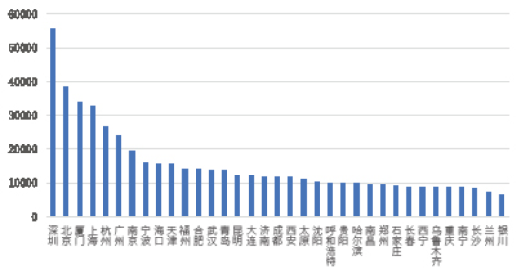 | 廈門(mén) | 96.3 | 西安 | 62.4 | 哈爾濱 | 49.0 |