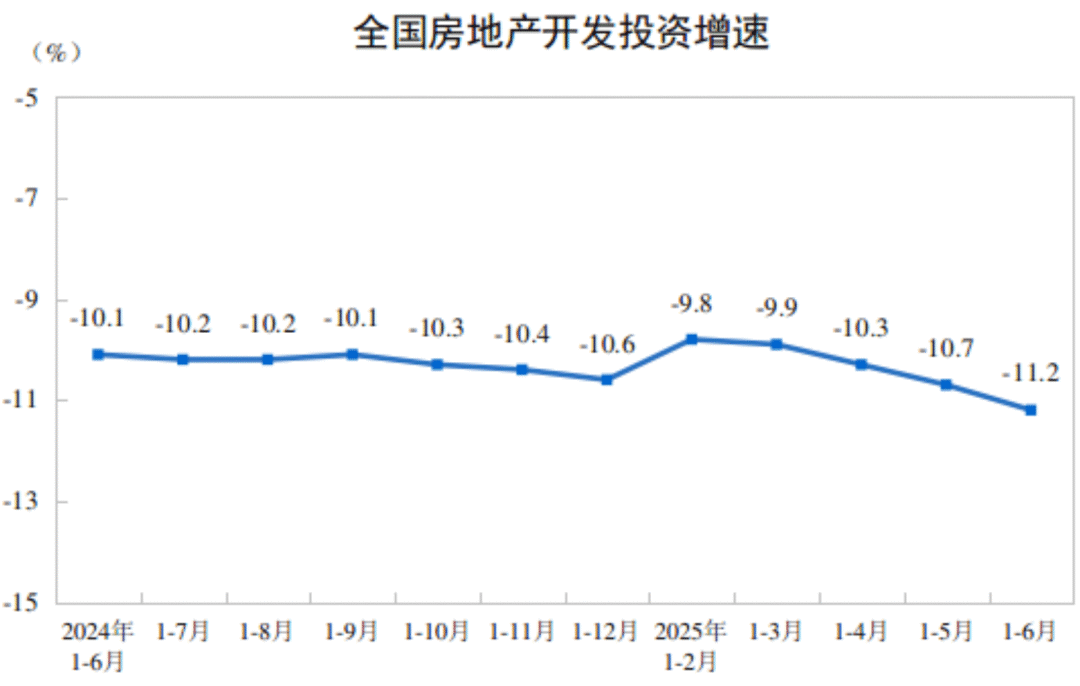 7月15日,國家統(tǒng)計(jì)局公布的全國房地產(chǎn)市場(chǎng)基本情況顯示,1-6月份全國房地產(chǎn)開發(fā)投資46658億元,同比下降11.2%;新建商品房銷售面積45851萬平方米,同比下降3.5%;新建商品房銷售額44241億元,下降5.5%。