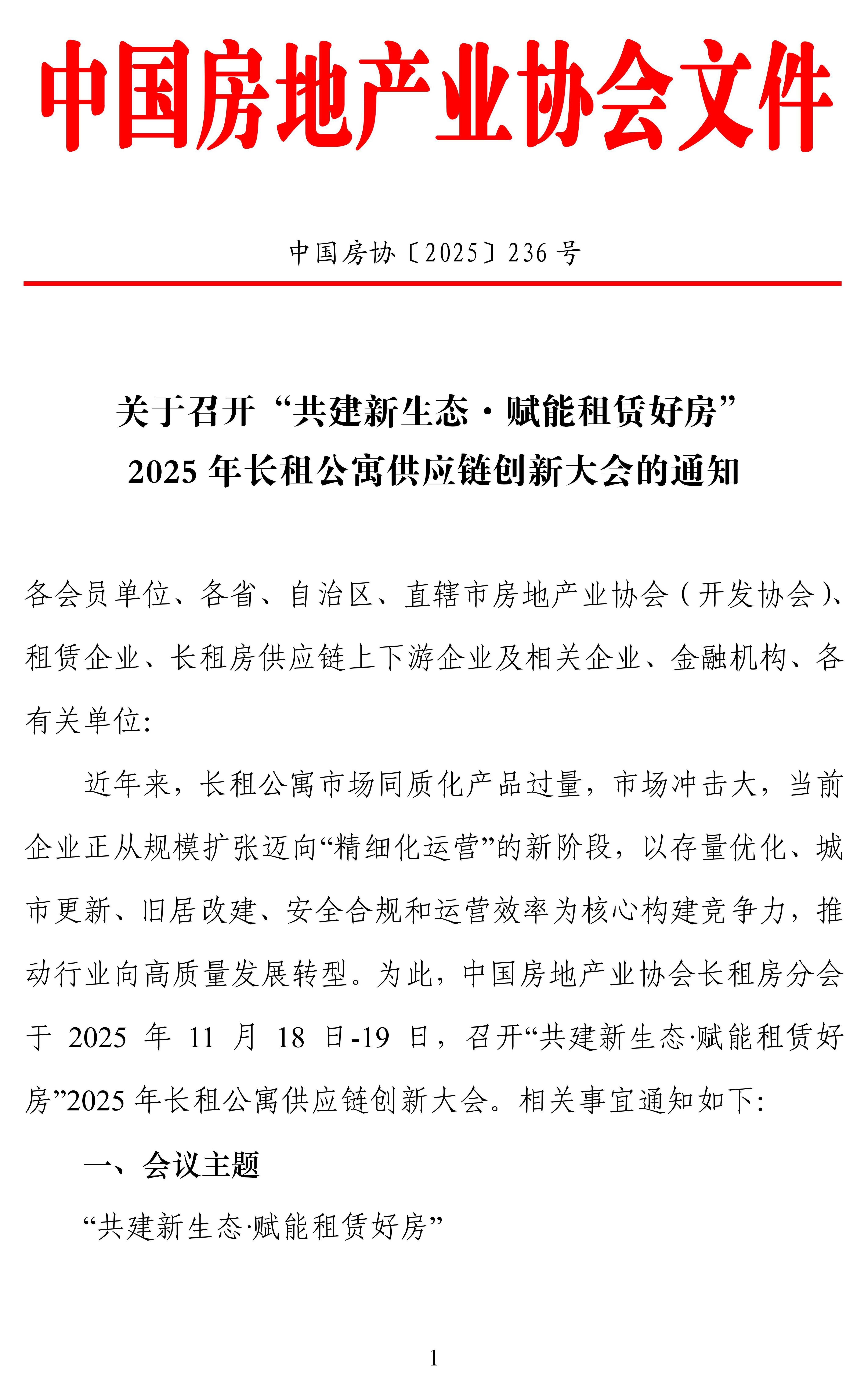 中房協(xié)關(guān)于召開(kāi)“共建新生態(tài)·賦能租賃好房” 2025年長(zhǎng)租公寓供應(yīng)鏈創(chuàng)新大會(huì)的通知