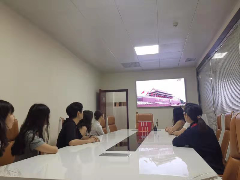 中原集團:中共中原(湖南)房地產代理有限公司黨支部組織全體黨員及員工認真觀看慶祝建黨100周年大會直播,當國歌響起全體黨員自覺起立唱起國歌。