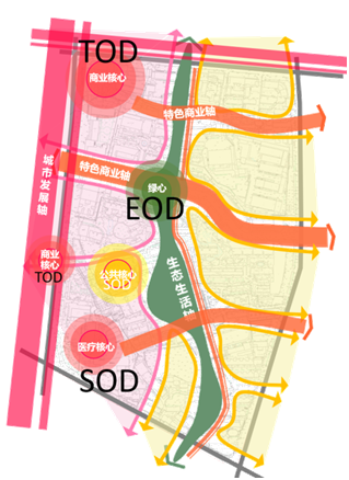 湖橡片區(qū)項目定位為產(chǎn)城融合新實施、未來社區(qū)新載體,擬按照“產(chǎn)業(yè)導入、醫(yī)城融合”的理念規(guī)劃,采用SOD+EOD+TOD的發(fā)展模式實施。