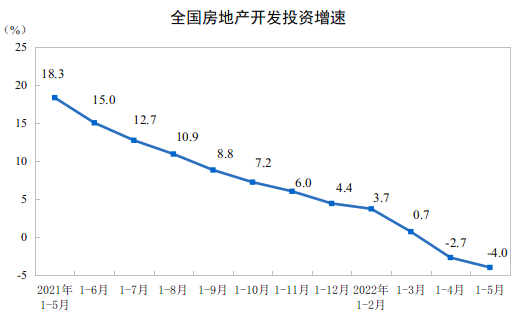 國(guó)家統(tǒng)計(jì)局6月15日公布的《全國(guó)房地產(chǎn)開(kāi)發(fā)投資和銷(xiāo)售情況》顯示,1-5月份,全國(guó)房地產(chǎn)開(kāi)發(fā)投資52134億元,同比下降4.0%;商品房銷(xiāo)售面積50738萬(wàn)平方米,同比下降23.6%;其中,住宅銷(xiāo)售面積下降28.1%。商品房銷(xiāo)售額48337億元,下降31.5%;其中,住宅銷(xiāo)售額下降34.5%。