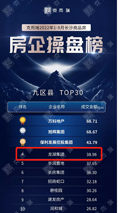 2022年以來,樓市銷售低迷,市場分化現(xiàn)象凸顯。而在克而瑞湖南區(qū)域最新發(fā)布的2022年前三季度長沙房地產(chǎn)銷售排行榜上,龍湖在長沙爆發(fā)力強(qiáng)勁,以成交金額38.96億元,排名長沙房企操盤榜第4名。值得一提的是,今年一季度,在該榜單上,長沙龍湖還位列第19名。同時(shí)這也是時(shí)隔三年龍湖在長沙首次重回TOP5。