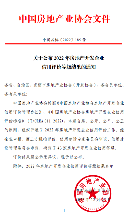 喜訊 | 省房協(xié)推薦的會(huì)員房企榮獲2022年全國(guó)信用評(píng)價(jià)AAA等級(jí)