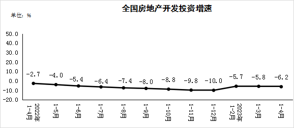 1—4月,全國房地產(chǎn)開發(fā)投資35514億元,同比下降6.2%;其中,住宅投資27072億元,下降4.9%。