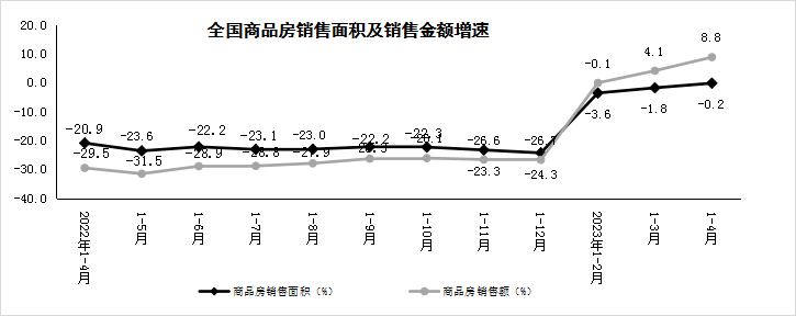 國家統(tǒng)計局:1-4月商品房銷售額同比增長8.8%