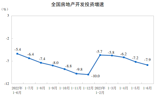 具體來(lái)看,房地產(chǎn)開(kāi)發(fā)投資增速降幅繼續(xù)擴(kuò)大。上半年全國(guó)房地產(chǎn)開(kāi)發(fā)投資58550億元,同比下降7.9%;其中,住宅投資44439億元,下降7.3%。