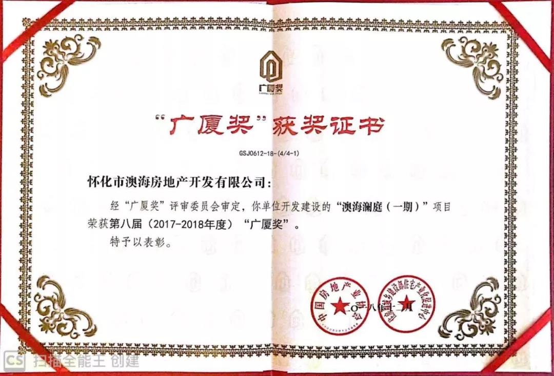 廣廈獎給予的榮譽表彰是澳海地產(chǎn)的驕傲