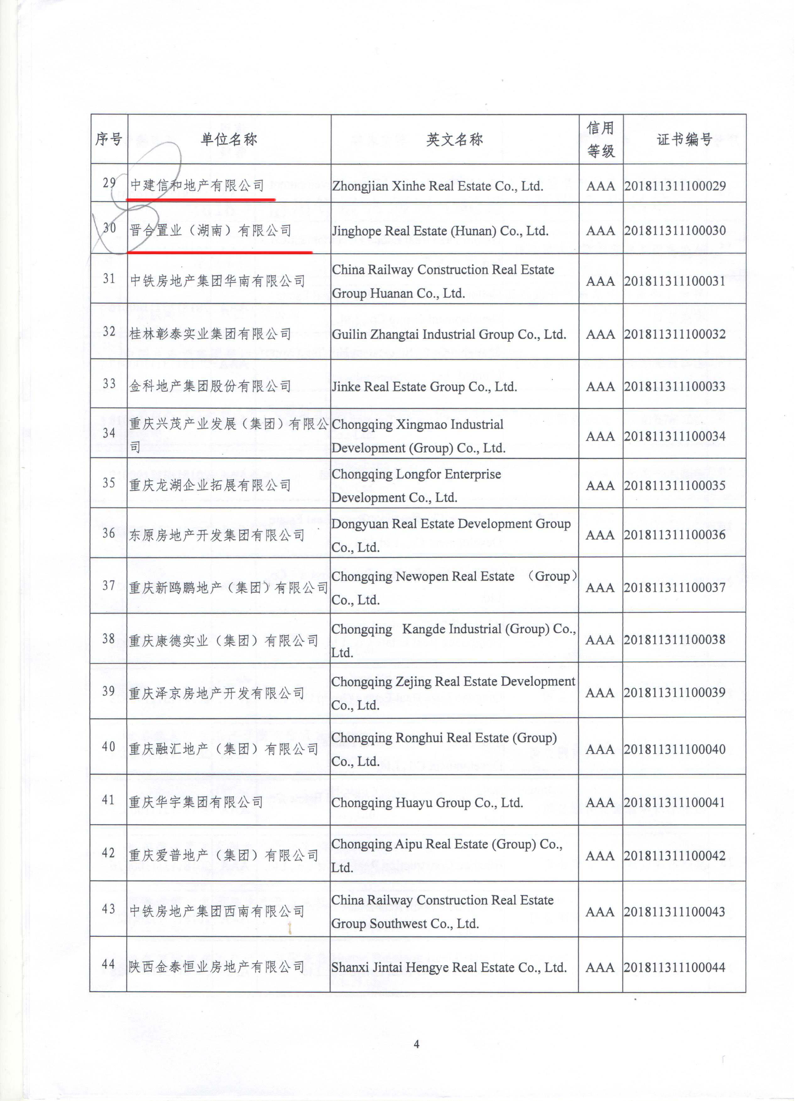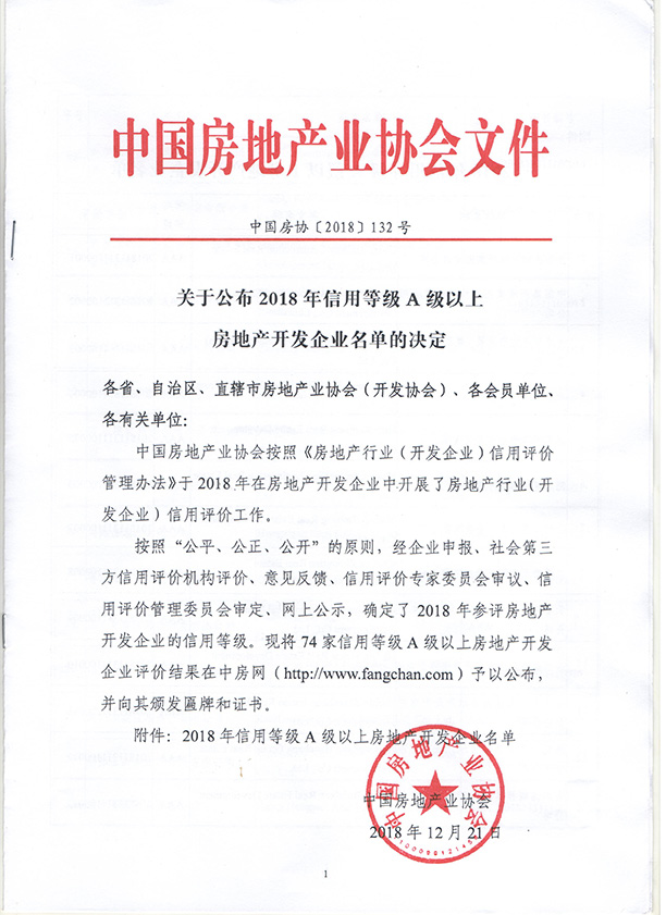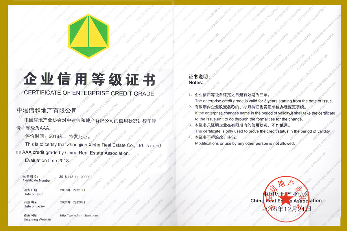 熱烈祝賀湖南中建信和地產(chǎn)有限公司和晉合置業(yè)(湖南)有限公司榮獲中國房地產(chǎn)業(yè)協(xié)會(huì)頒發(fā)“信用等級AAA”企業(yè)