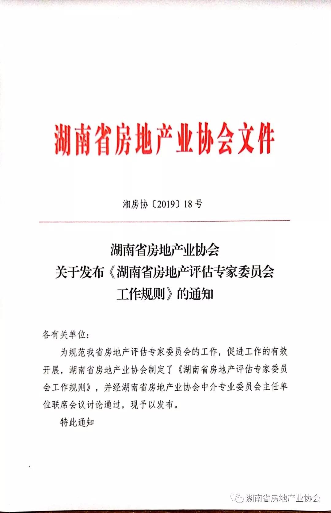 關(guān)于發(fā)布《湖南省房地產(chǎn)評(píng)估專家委員會(huì)工作規(guī)則》的通知