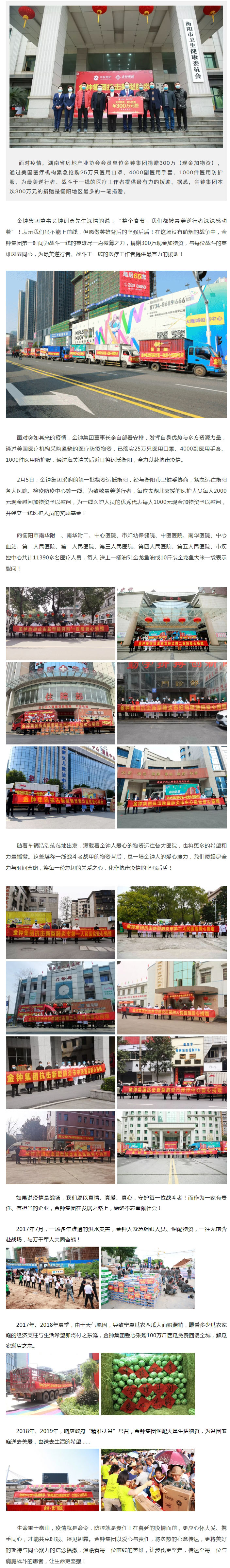 湖南省房地產(chǎn)業(yè)協(xié)會會員單位金鐘集團捐贈300萬元,致敬“最美逆行者”!