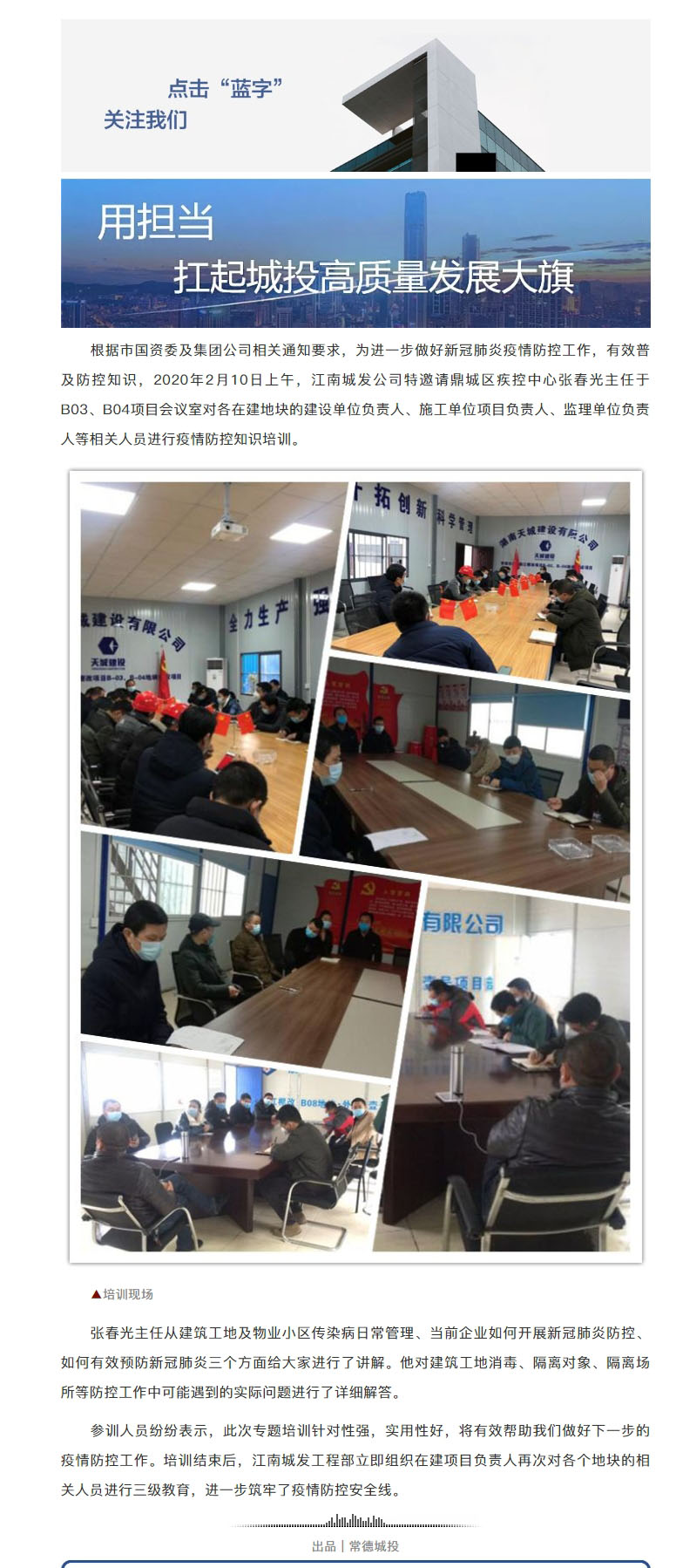 【用擔當 扛起城投高質量發(fā)展大旗】江南城發(fā)開展關于節(jié)后復工疫情防控知識培訓