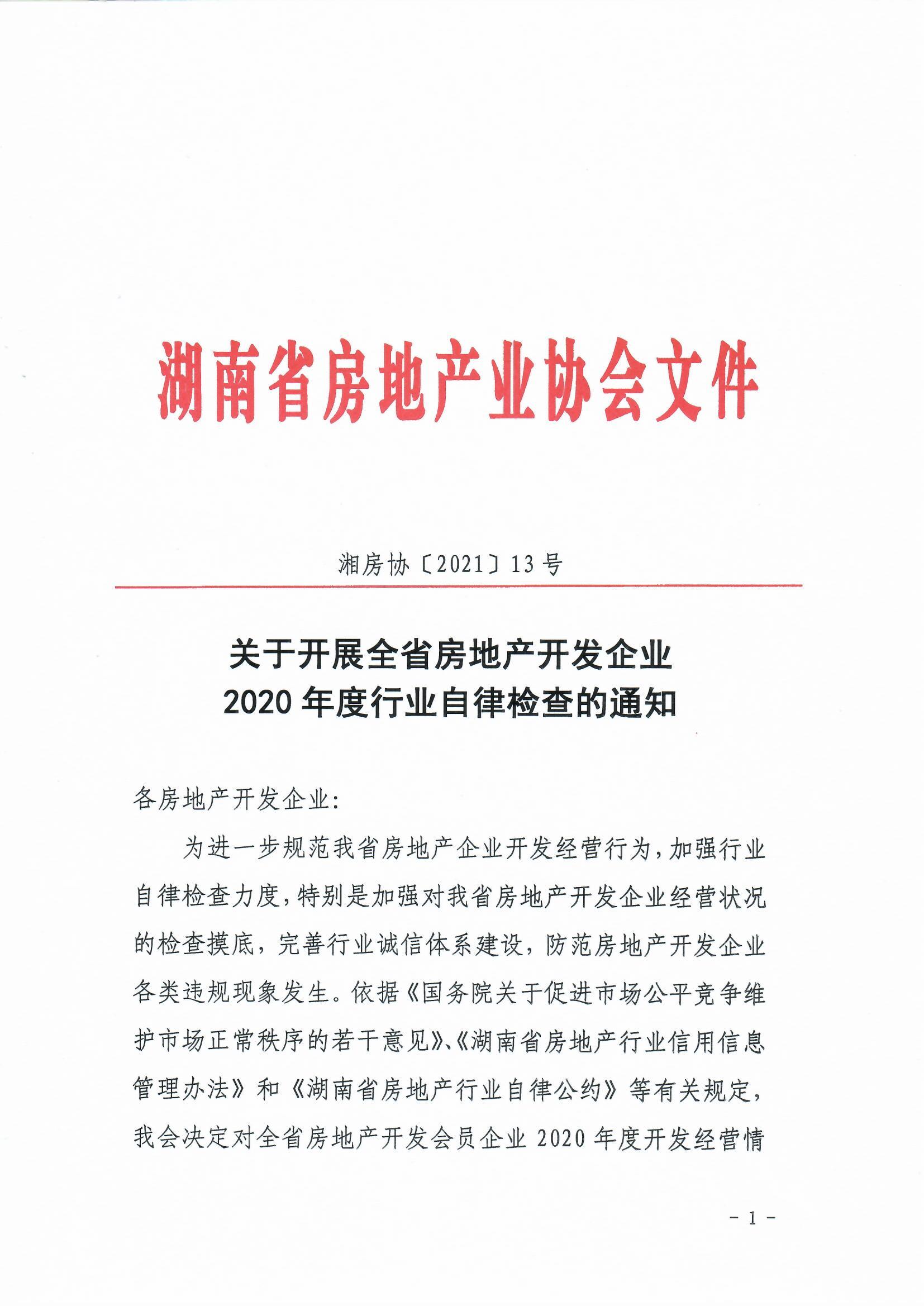 關(guān)于開(kāi)展全省房地產(chǎn)開(kāi)發(fā)企業(yè)2020年度行業(yè)自律檢查的通知