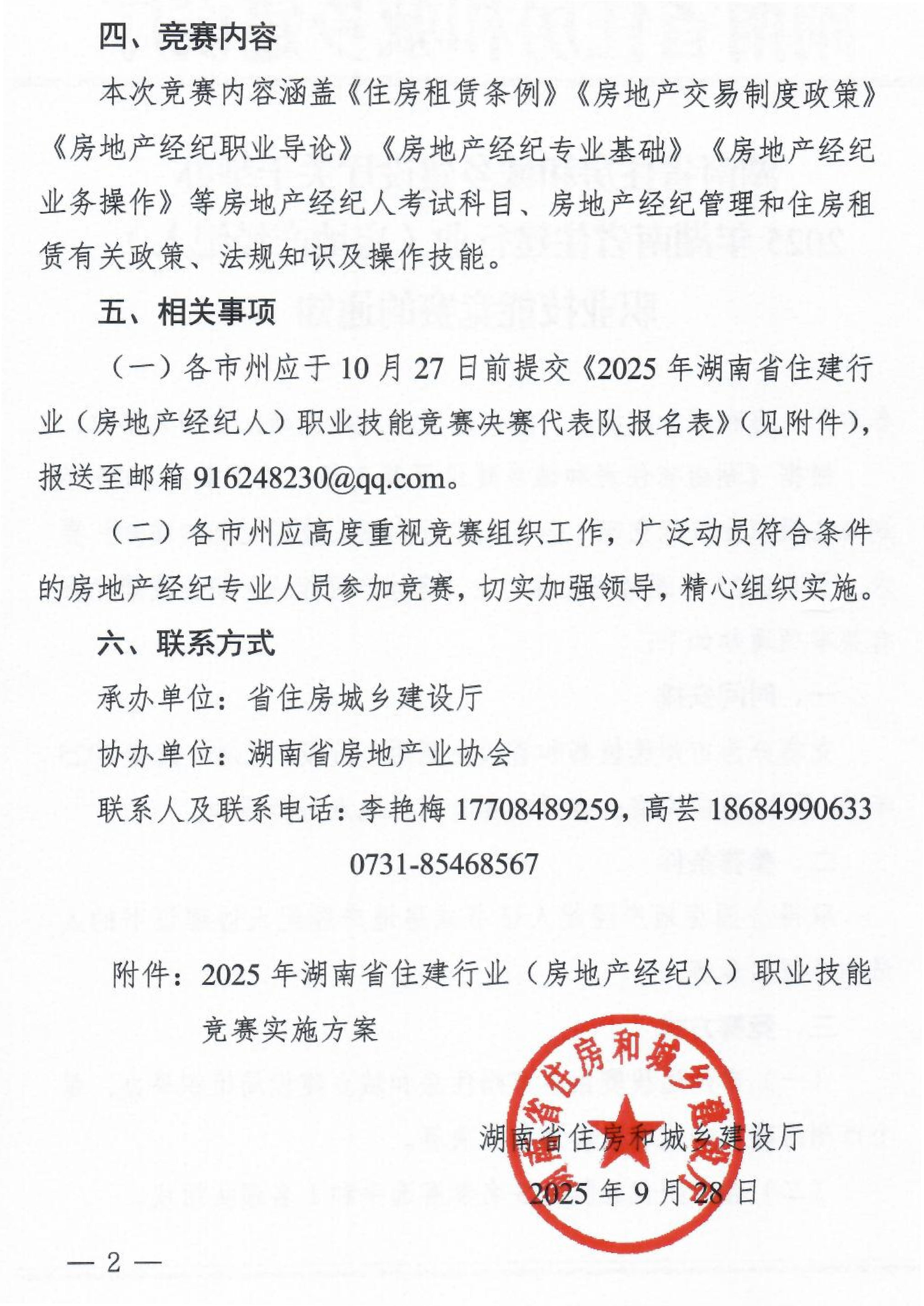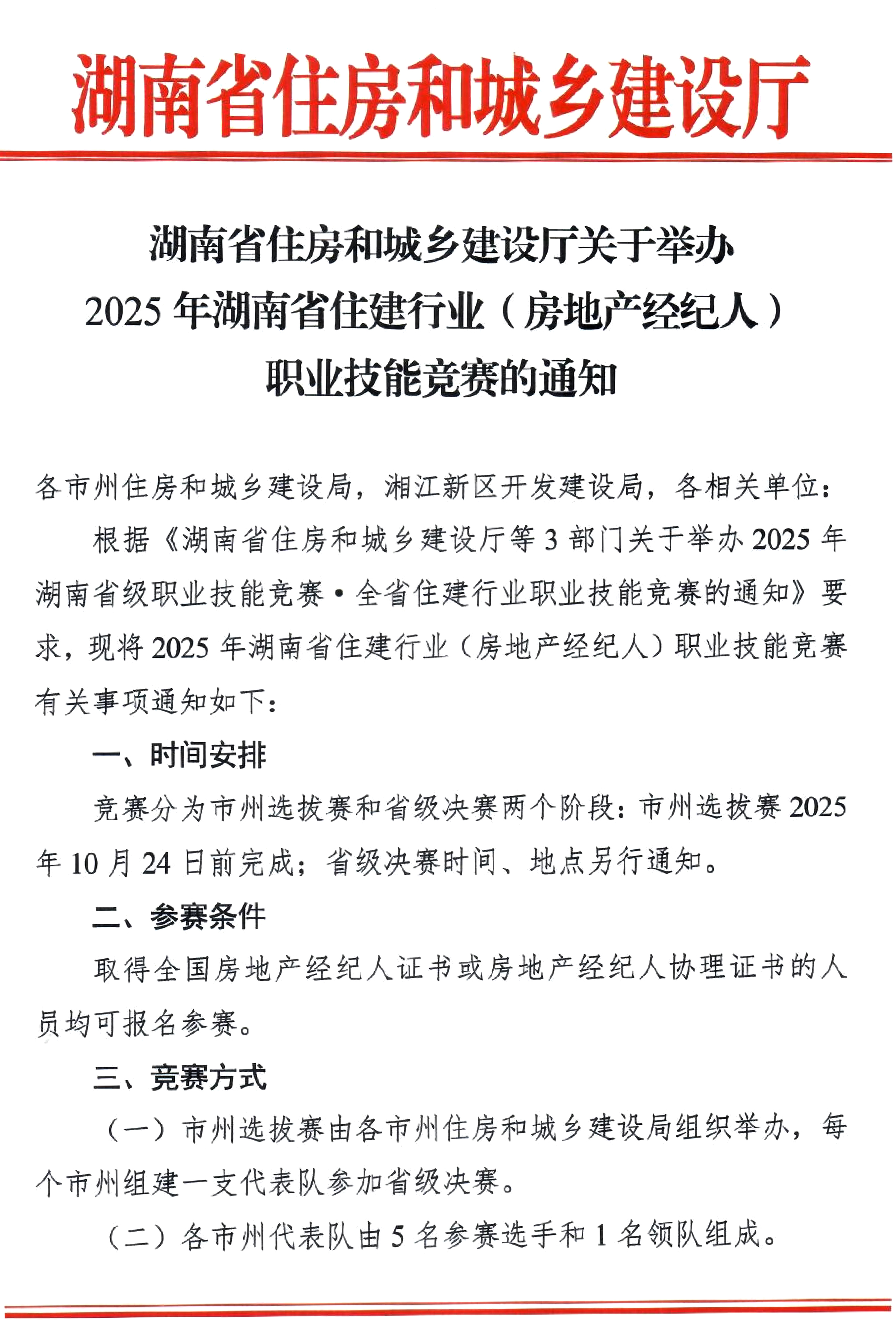 關(guān)于舉辦2025年湖南省住建行業(yè)(房地產(chǎn)經(jīng)紀(jì)人)職業(yè)技能競(jìng)賽的通知