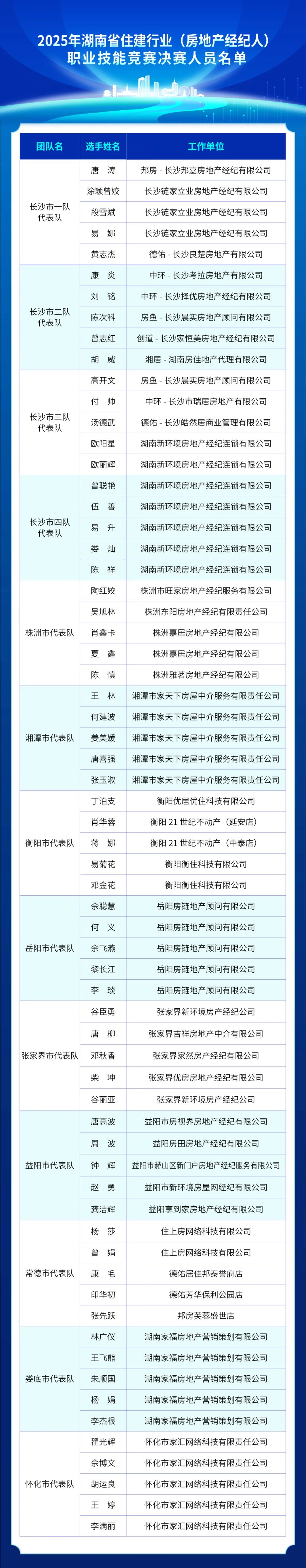 附件:2025年湖南省住建行業(yè)(房地產(chǎn)經(jīng)紀(jì)人)職業(yè)技能競(jìng)賽決賽人員名單