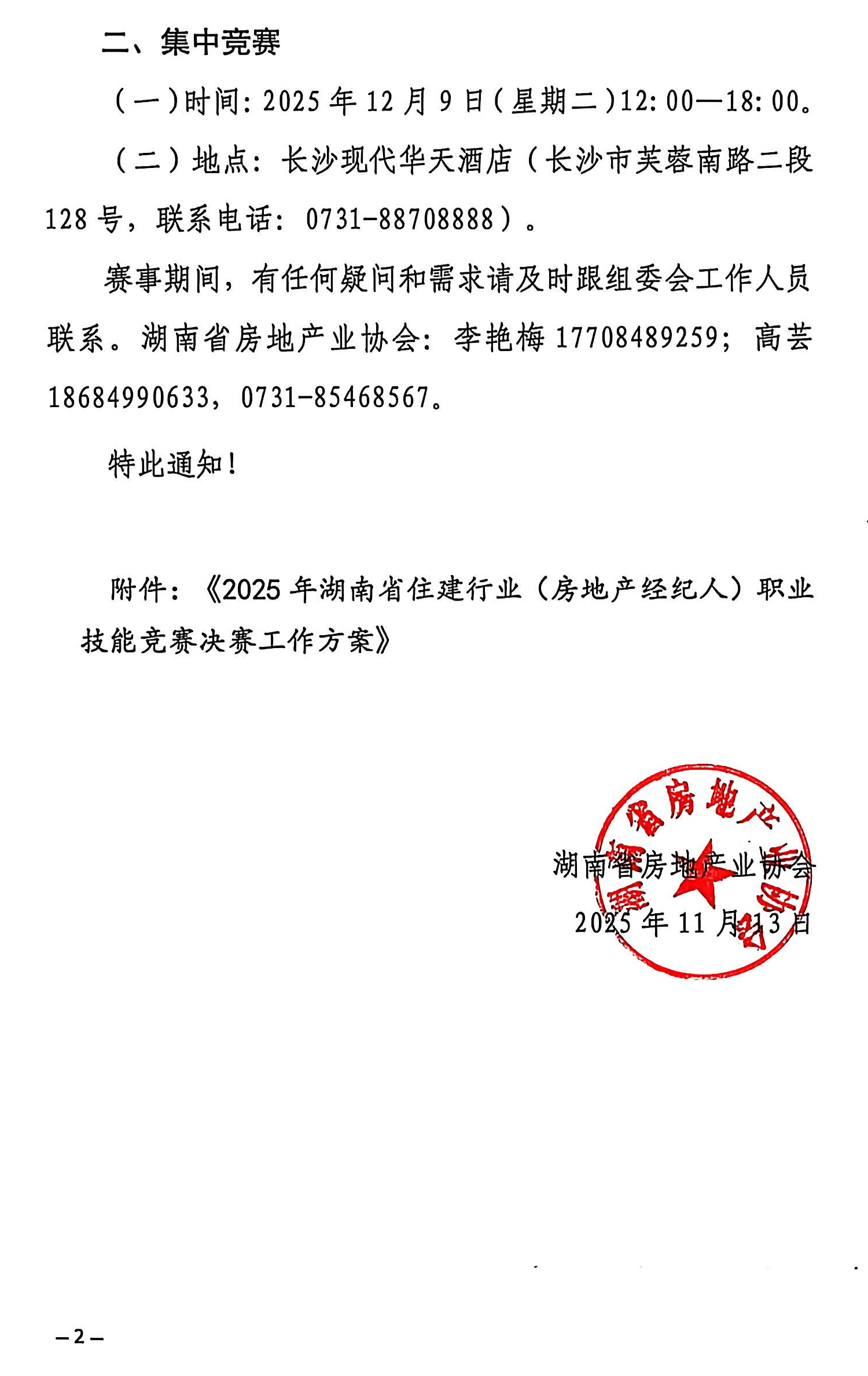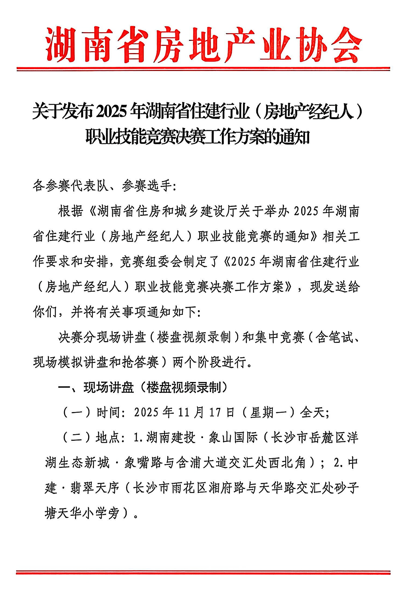 關(guān)于發(fā)布 2025 年湖南省住建行業(yè)(房地產(chǎn)經(jīng)紀人)職業(yè)技能競賽決賽工作方案的通知