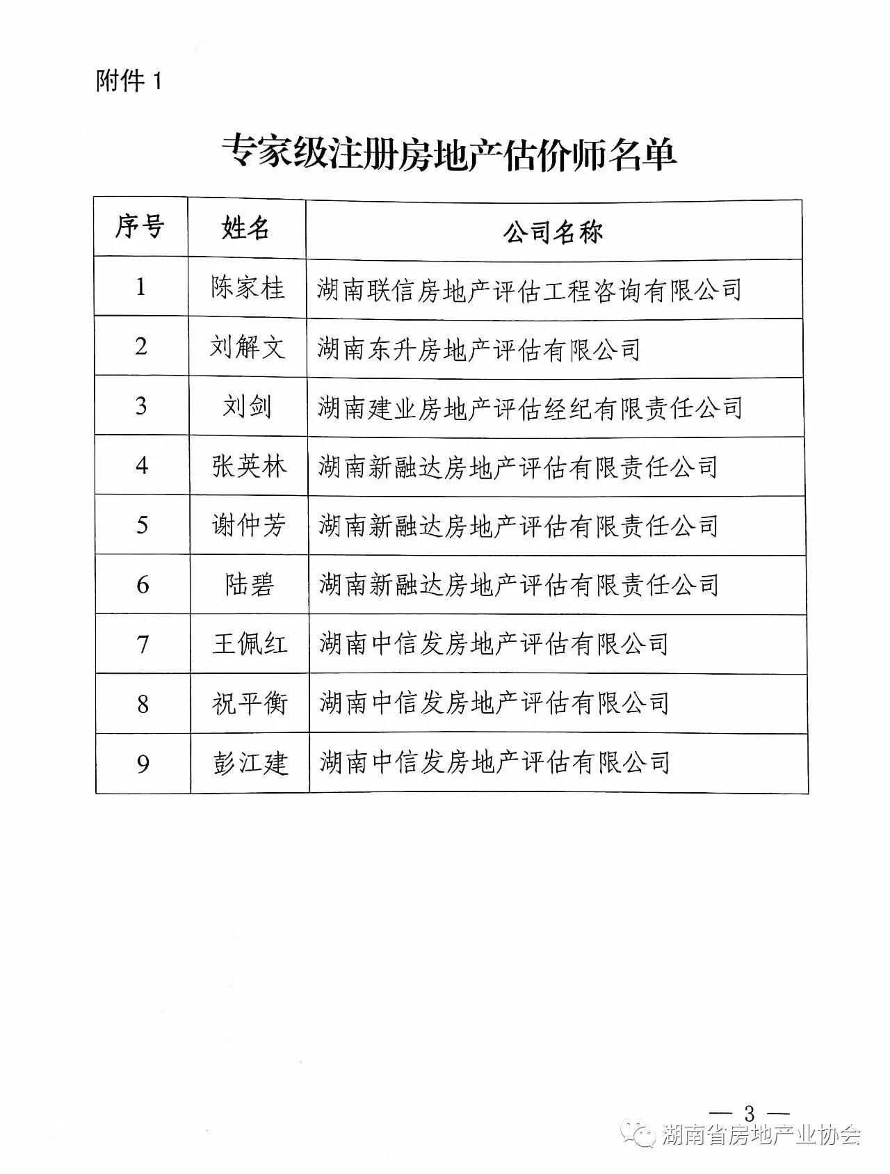 根據(jù)《湖南省房地產(chǎn)業(yè)協(xié)會(huì)<關(guān)于印發(fā)湖南省注冊(cè)房地產(chǎn)估價(jià)師執(zhí)業(yè)等級(jí)評(píng)審考核辦法(試行)的通知>》,經(jīng)企業(yè)自行申報(bào)、市州房地產(chǎn)中介協(xié)會(huì)(中介專業(yè)委)初審、省房地產(chǎn)業(yè)協(xié)會(huì)中介專業(yè)委員會(huì)復(fù)審、專家委員會(huì)審定、主任單位會(huì)議通過后,陳家桂等9位同志被評(píng)定為專家級(jí)注冊(cè)房地產(chǎn)估價(jià)師,劉向陽等15位同志被評(píng)定為高級(jí)注冊(cè)房地產(chǎn)估價(jià)師。原文如下。