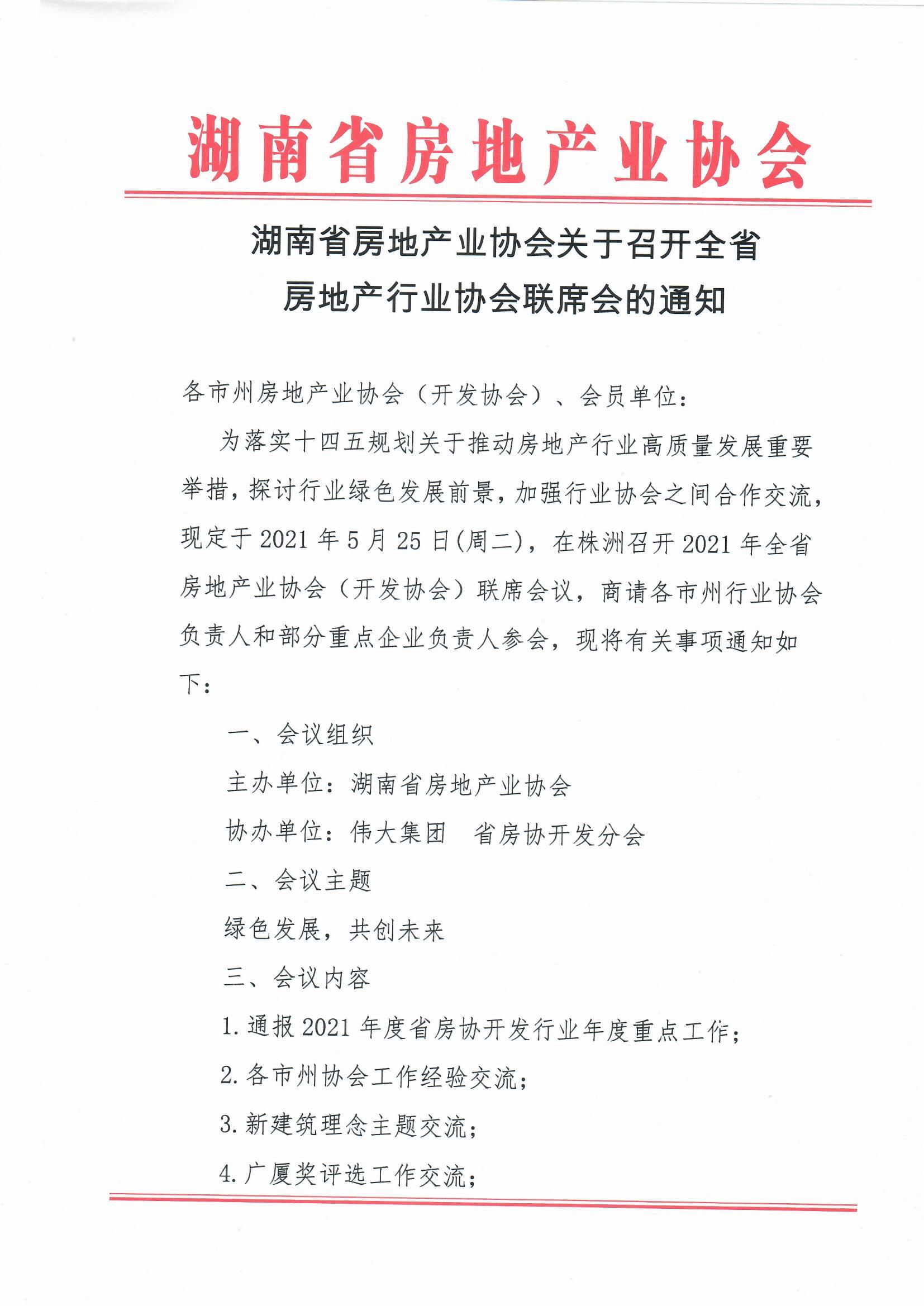 湖南省房地產(chǎn)業(yè)協(xié)會(huì)關(guān)于召開(kāi)全省房地產(chǎn)行業(yè)協(xié)會(huì)聯(lián)席會(huì)的通知