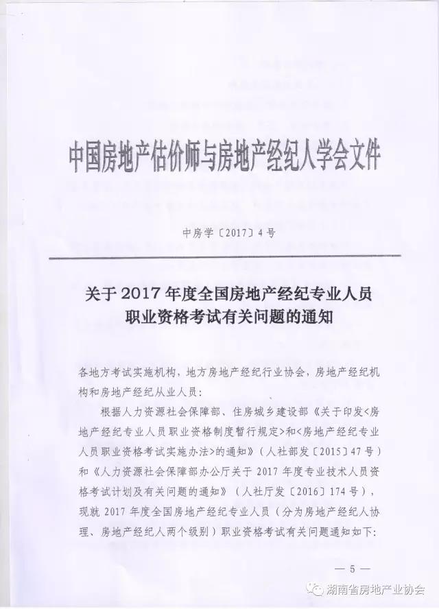 湖南省房地產(chǎn)業(yè)協(xié)會(huì)轉(zhuǎn)發(fā)《中國(guó)房地產(chǎn)估價(jià)師與房地產(chǎn)經(jīng)紀(jì)人學(xué)會(huì)關(guān)于2017年度全國(guó)房地產(chǎn)經(jīng)紀(jì)專(zhuān)業(yè)人員職業(yè)資格考試有關(guān)問(wèn)題的通知》