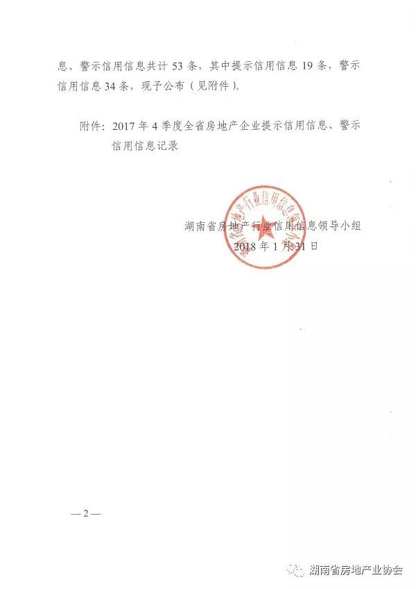 湖南省房地產(chǎn)行業(yè)信用信息領(lǐng)導(dǎo)小組關(guān)于公布2017年4季度湖南省房地產(chǎn)企業(yè)提示信用信息警示信用信息的通知