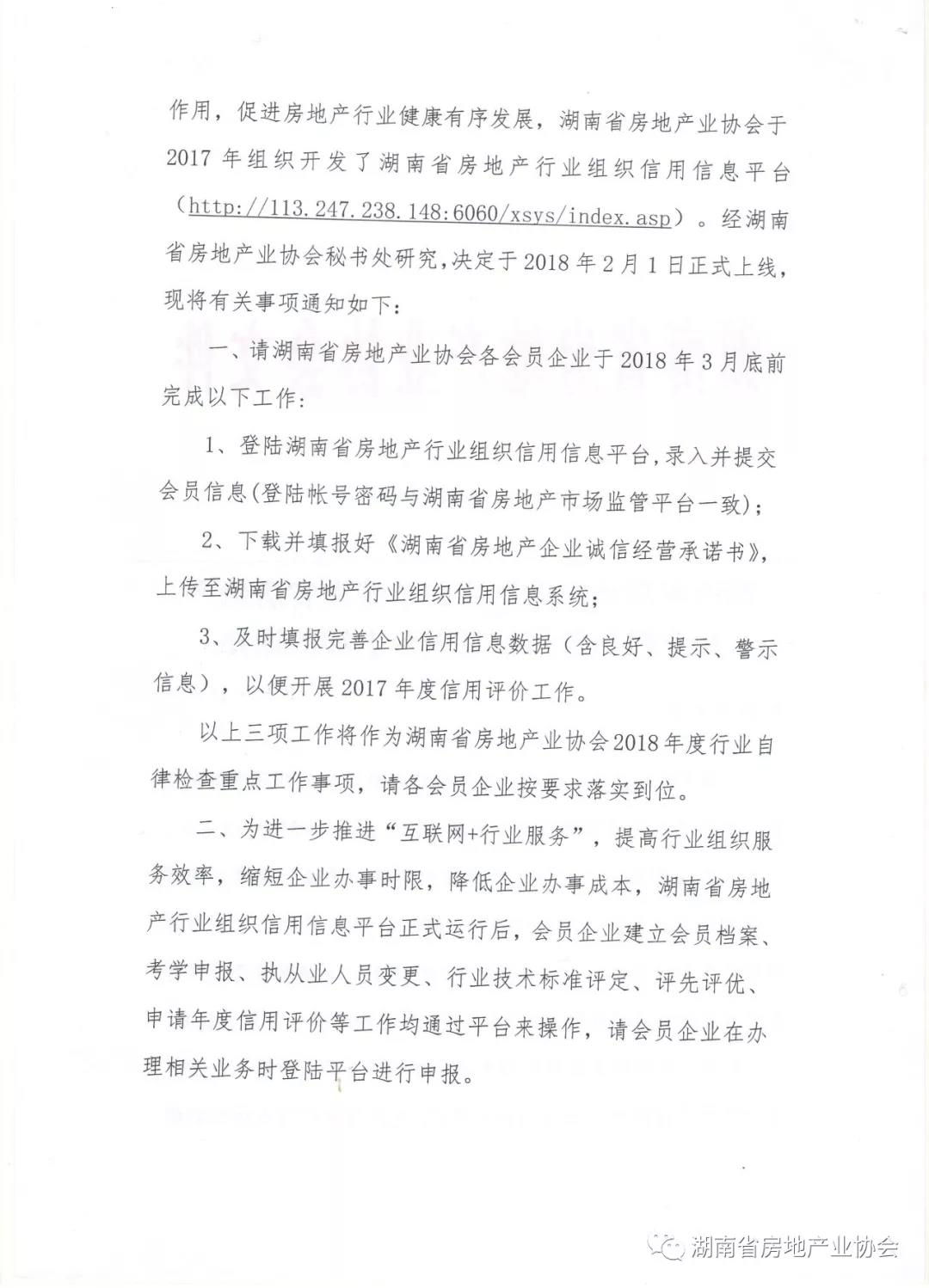 關(guān)于湖南省房地產(chǎn)行業(yè)組織信用信息平臺(tái)上線的通知