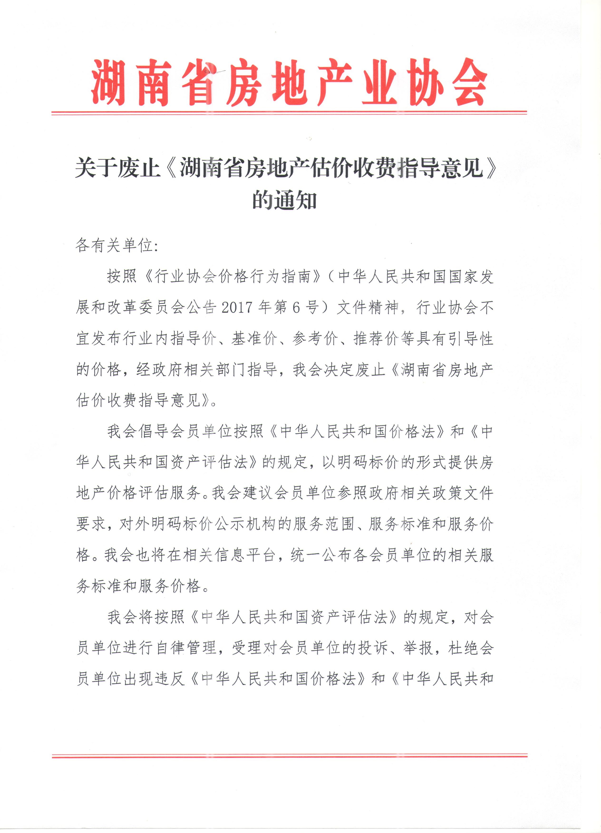 關于廢止《湖南省房地產(chǎn)估價收費指導意見》的通知