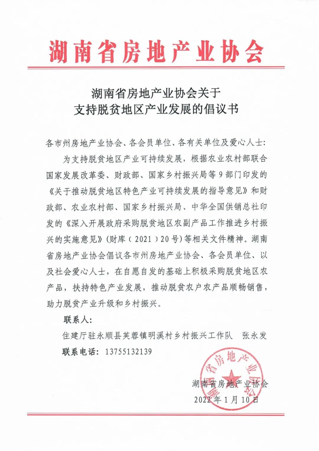 為支持脫貧地區(qū)產(chǎn)業(yè)可持續(xù)發(fā)展,根據(jù)農(nóng)業(yè)農(nóng)村部聯(lián)合國(guó)家發(fā)展改革委、財(cái)政部、國(guó)家鄉(xiāng)村振興局等9部門印發(fā)的《關(guān)于推動(dòng)脫貧地區(qū)特色產(chǎn)業(yè)可持續(xù)發(fā)展的指導(dǎo)意見》和財(cái)政部、農(nóng)業(yè)農(nóng)村部、國(guó)家鄉(xiāng)村振興局、中華全國(guó)供銷總社印發(fā)的《深入開展政府采購(gòu)脫貧地區(qū)農(nóng)副產(chǎn)品工作推進(jìn)鄉(xiāng)村振興的實(shí)施意見》(財(cái)庫(kù)﹝2021﹞20號(hào))等相關(guān)文件精神。湖南省房地產(chǎn)業(yè)協(xié)會(huì)倡議各市州房地產(chǎn)業(yè)協(xié)會(huì)、各會(huì)員單位、以及社會(huì)愛心人士,在自愿自發(fā)的基礎(chǔ)上積極采購(gòu)脫貧地區(qū)農(nóng)產(chǎn)品,扶持特色產(chǎn)業(yè)發(fā)展,推動(dòng)脫貧農(nóng)戶農(nóng)產(chǎn)品順暢銷售,助力脫貧產(chǎn)業(yè)升級(jí)和鄉(xiāng)村振興。