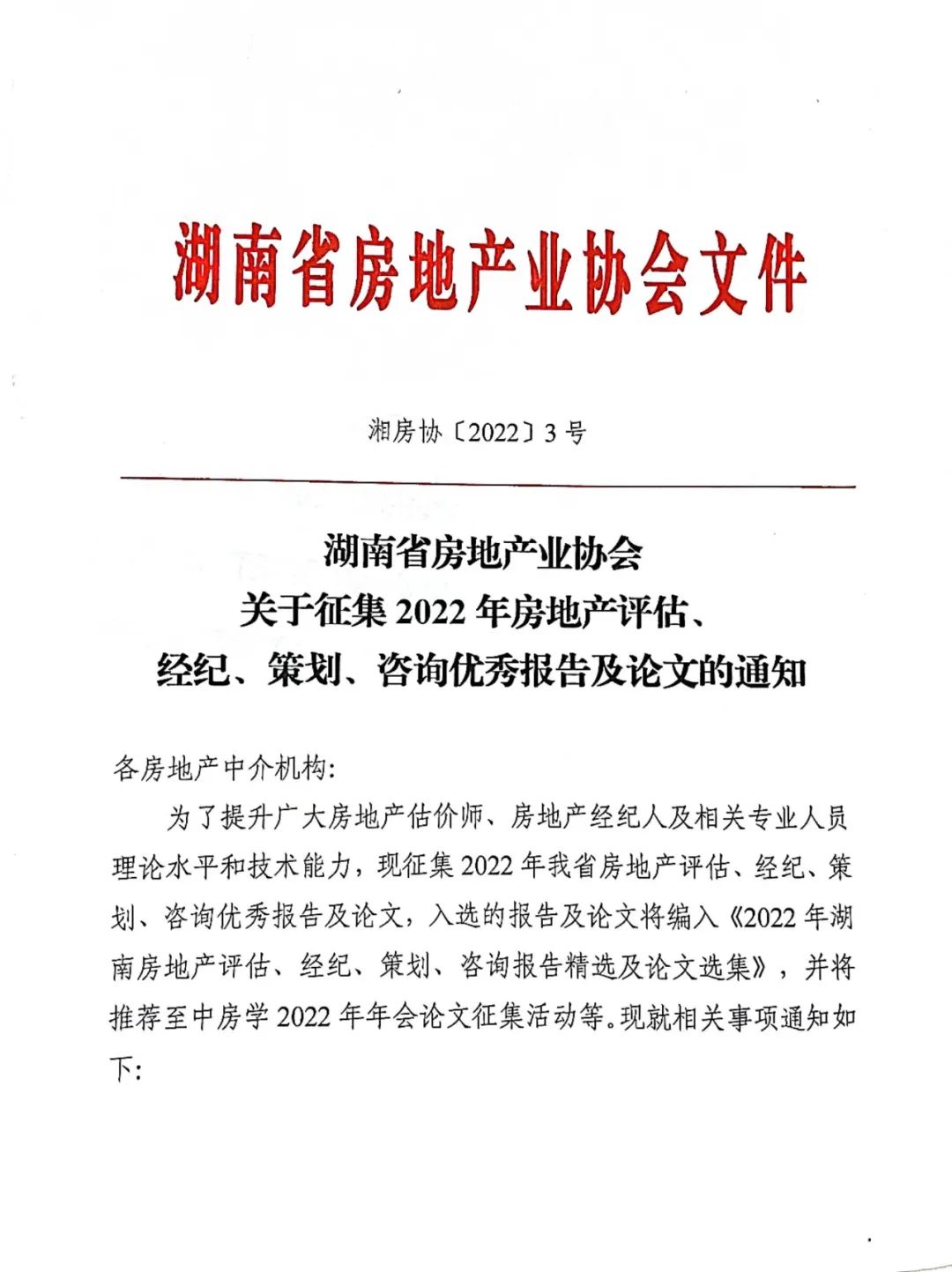 關(guān)于征集2022年房地產(chǎn)評估、經(jīng)紀(jì)、策劃、咨詢優(yōu)秀報告及論文的通知