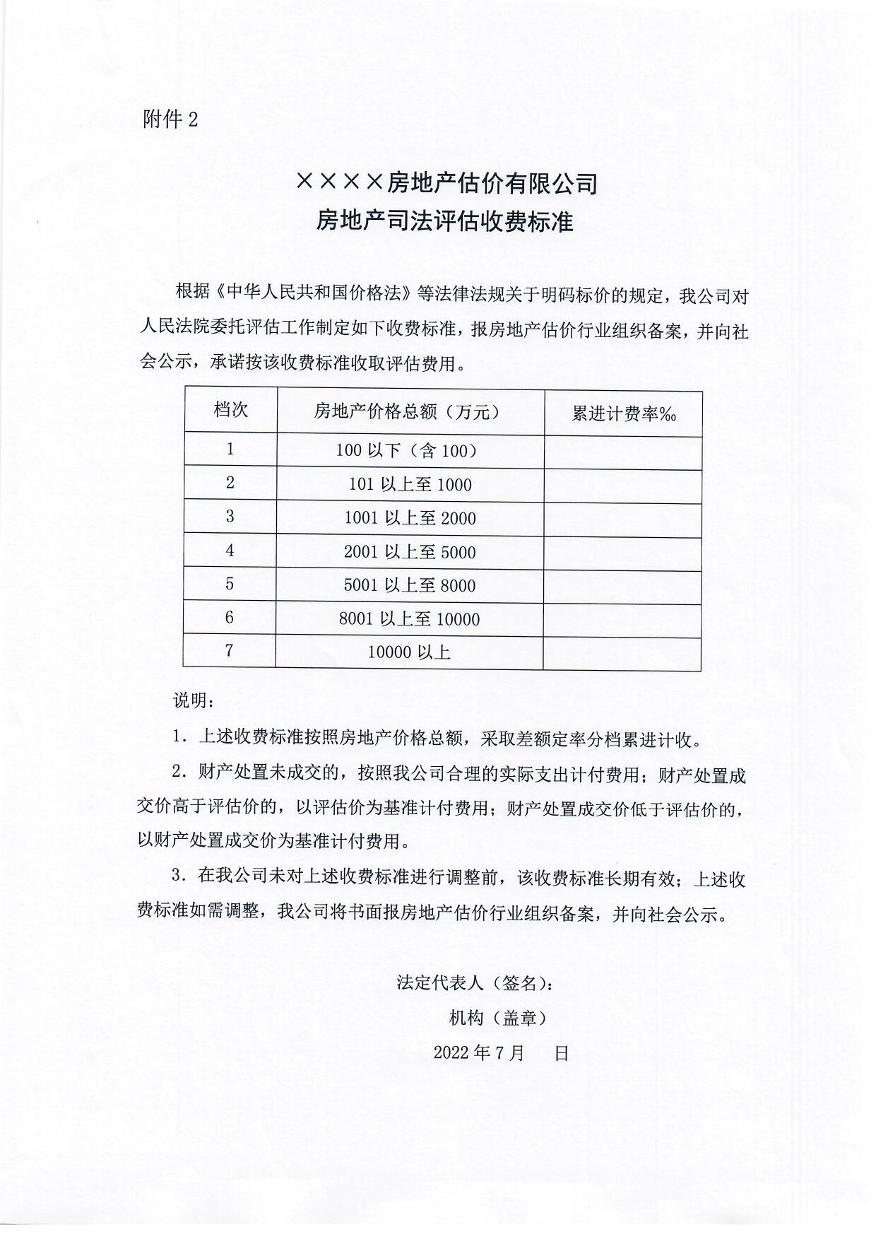 2.房地產(chǎn)司法評估收費標(biāo)準(zhǔn)(附件2)。