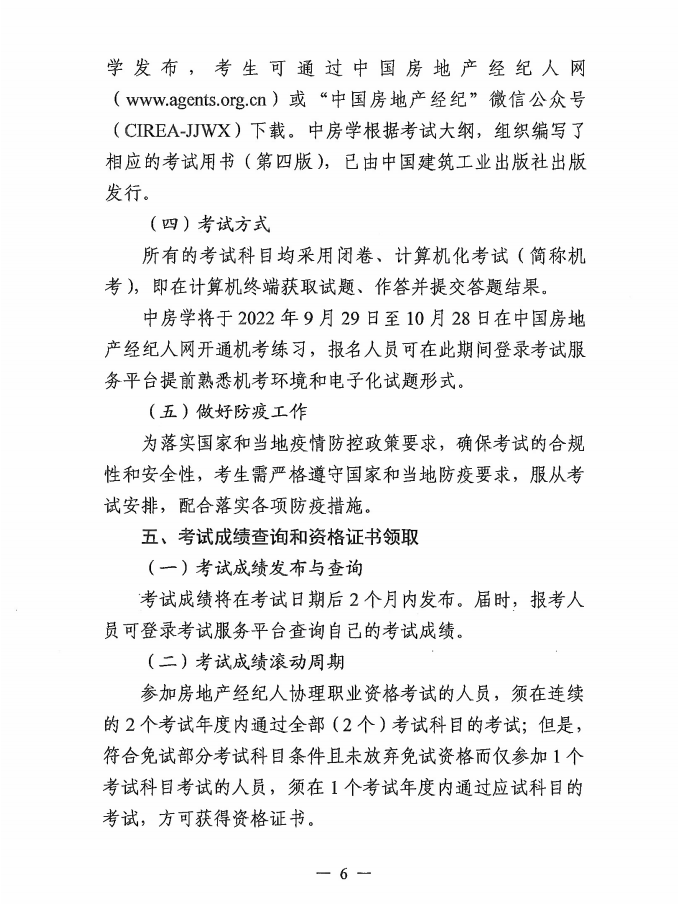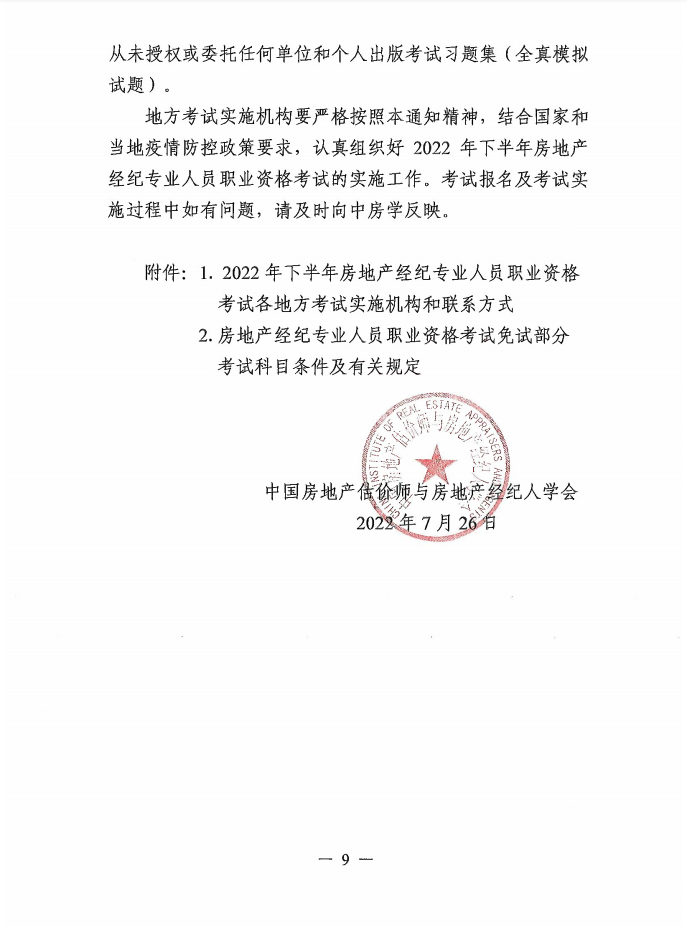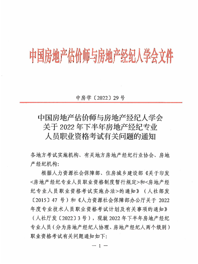 附件:中國(guó)房地產(chǎn)估價(jià)師與房地產(chǎn)經(jīng)紀(jì)人學(xué)會(huì)關(guān)于2022年下半年房地產(chǎn)經(jīng)紀(jì)專業(yè)人員職業(yè)資格考試有關(guān)問題的通知