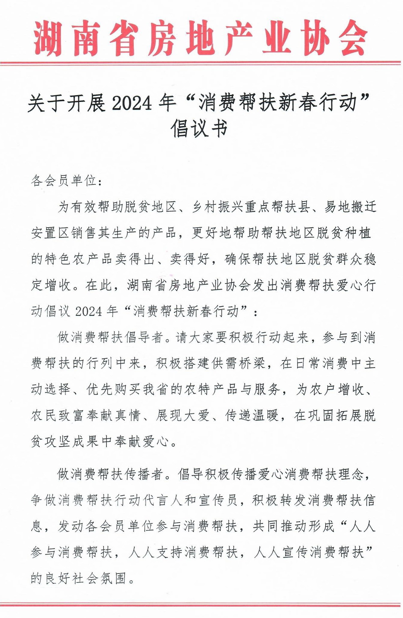 關于開展2024年“消費幫扶新春行動”倡議書