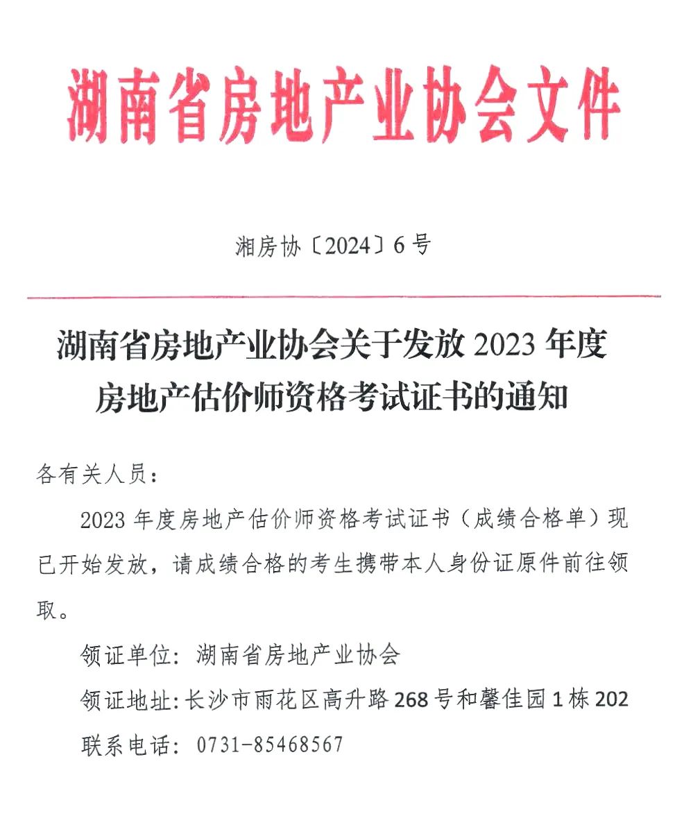 關(guān)于發(fā)放2023年度房地產(chǎn)估價師資格考試證書的通知