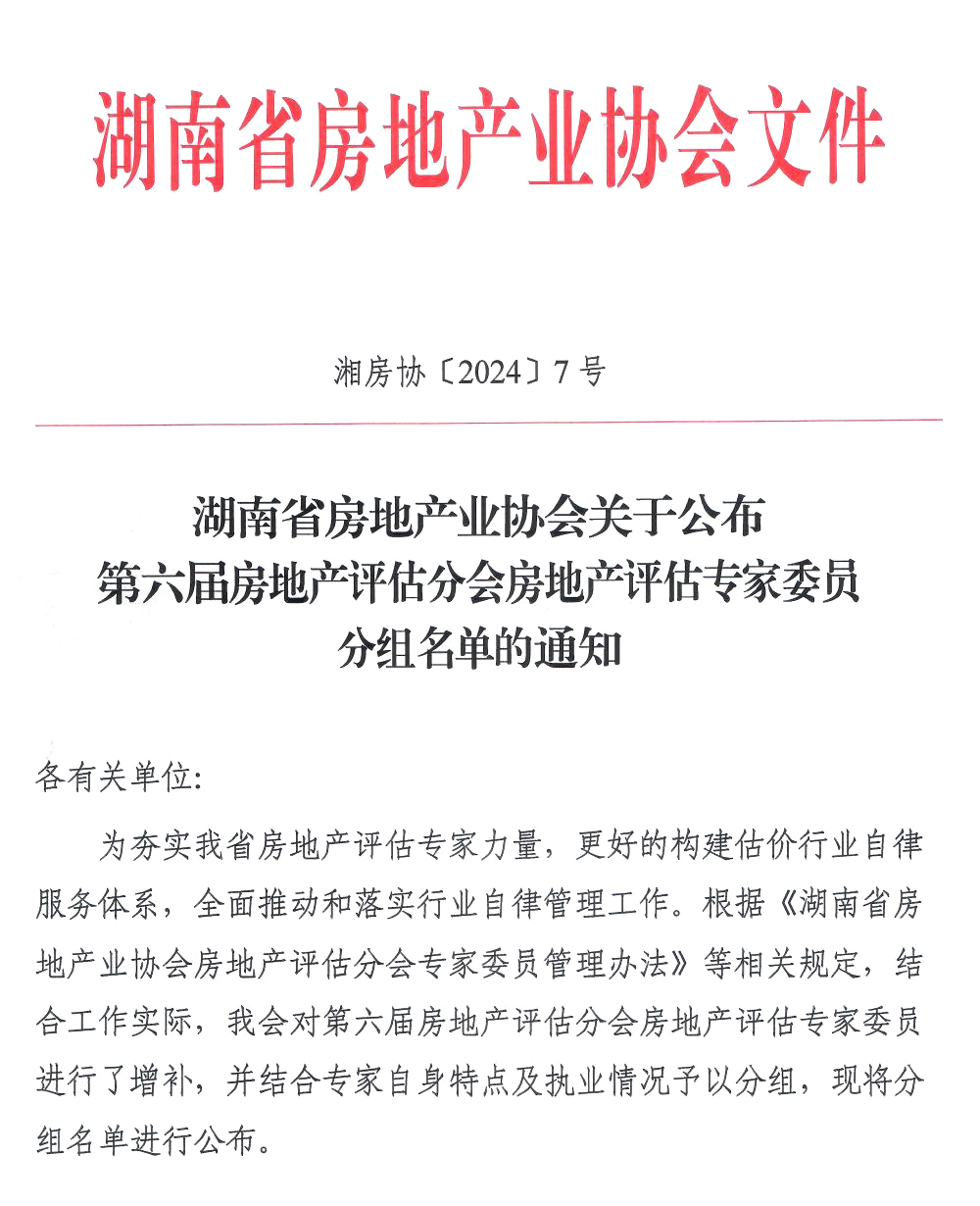 關(guān)于公布第六屆房地產(chǎn)評(píng)估分會(huì)房地產(chǎn)評(píng)估專家委員分組名單的通知