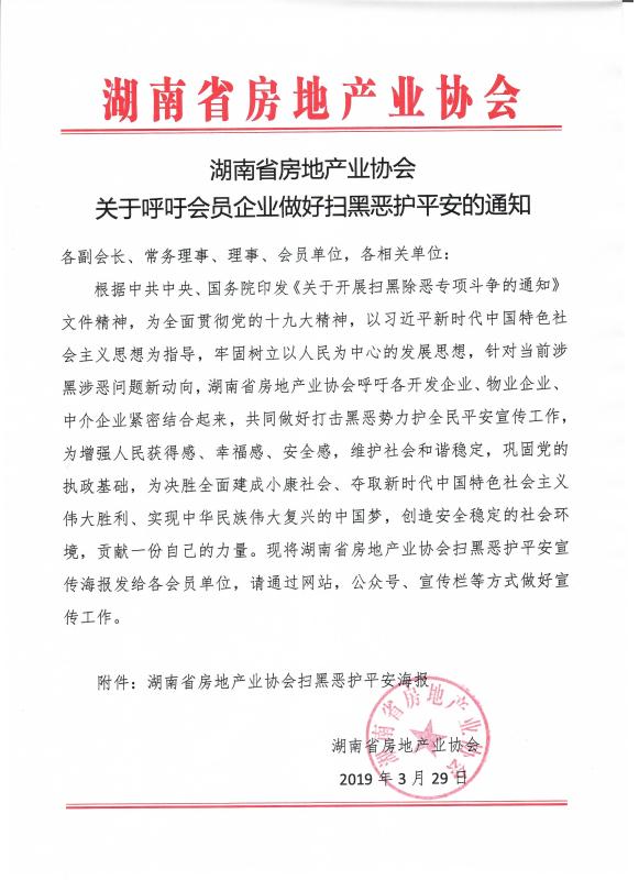 附件:(點擊鏈接下載湖南省房地產(chǎn)業(yè)協(xié)會掃黑惡護平安宣傳海報)