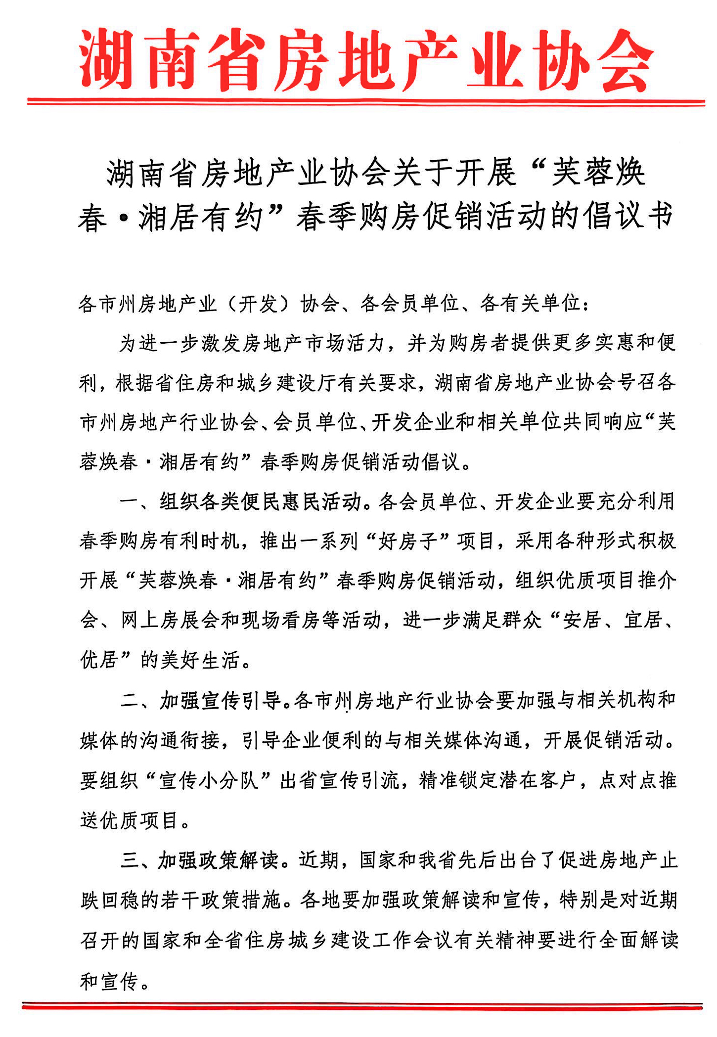關(guān)于開展“芙蓉?zé)ù骸は婢佑屑s”春季購房促銷活動的倡議書