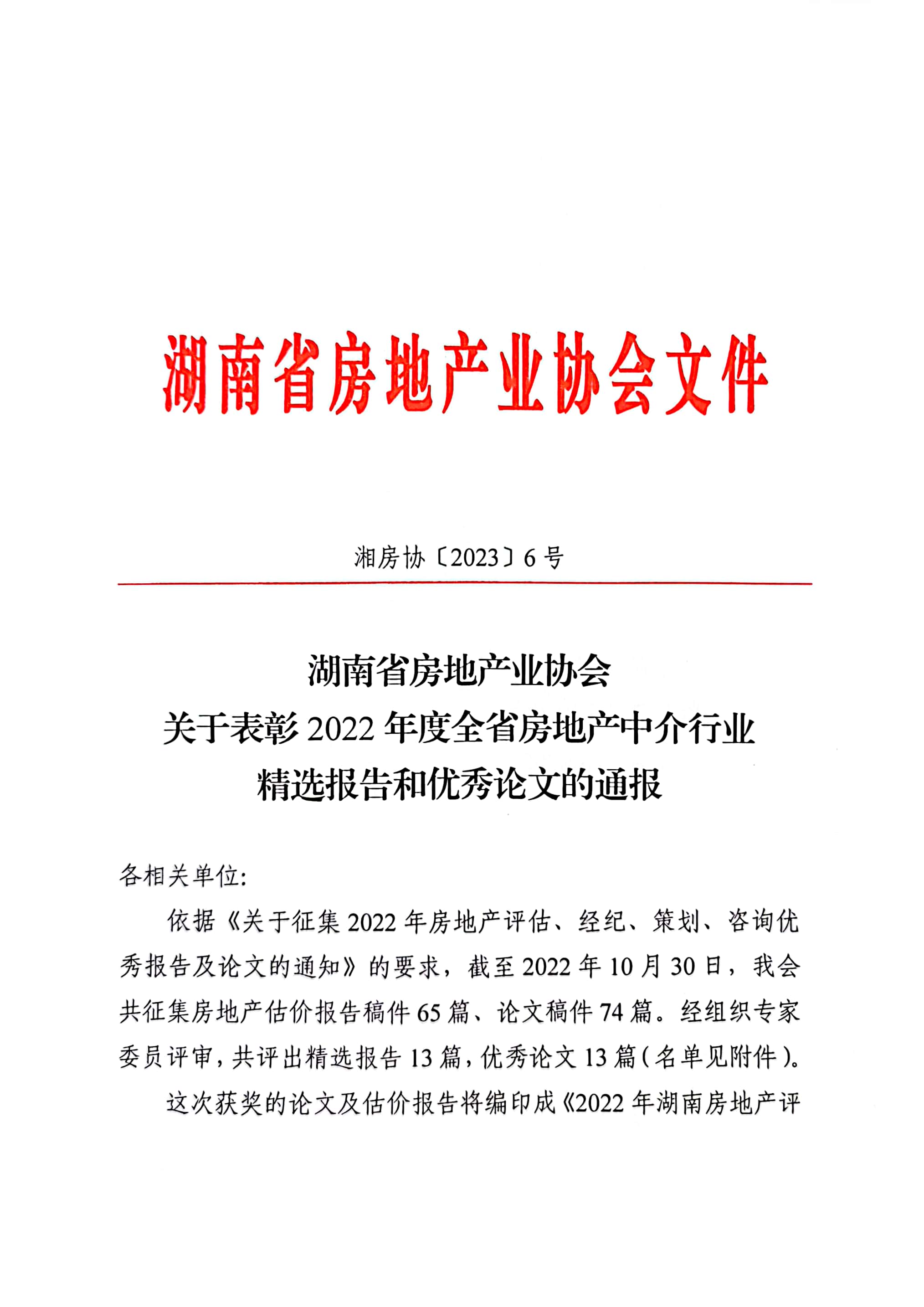 關(guān)于表彰2022年度全省房地產(chǎn)中介行業(yè)精選報(bào)告和優(yōu)秀論文的通報(bào)