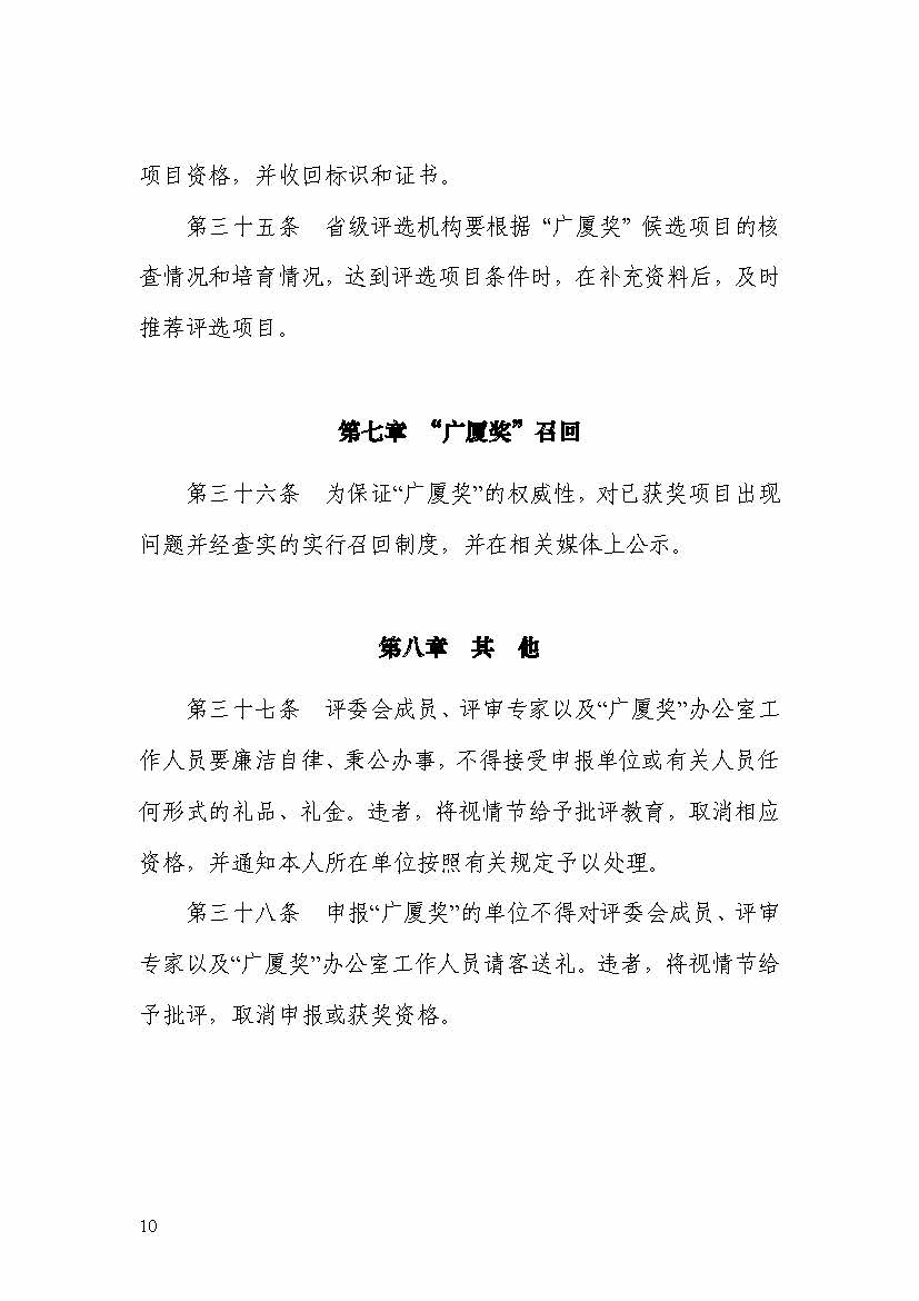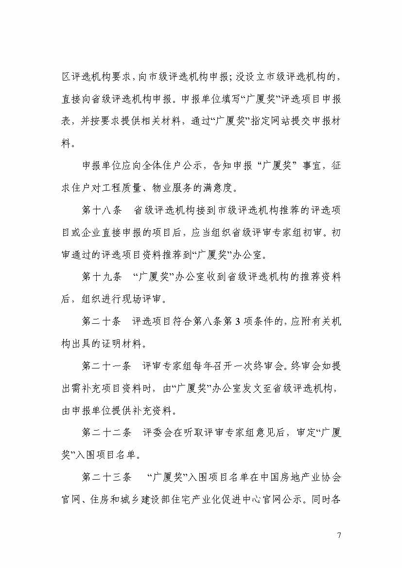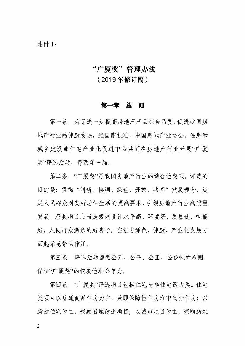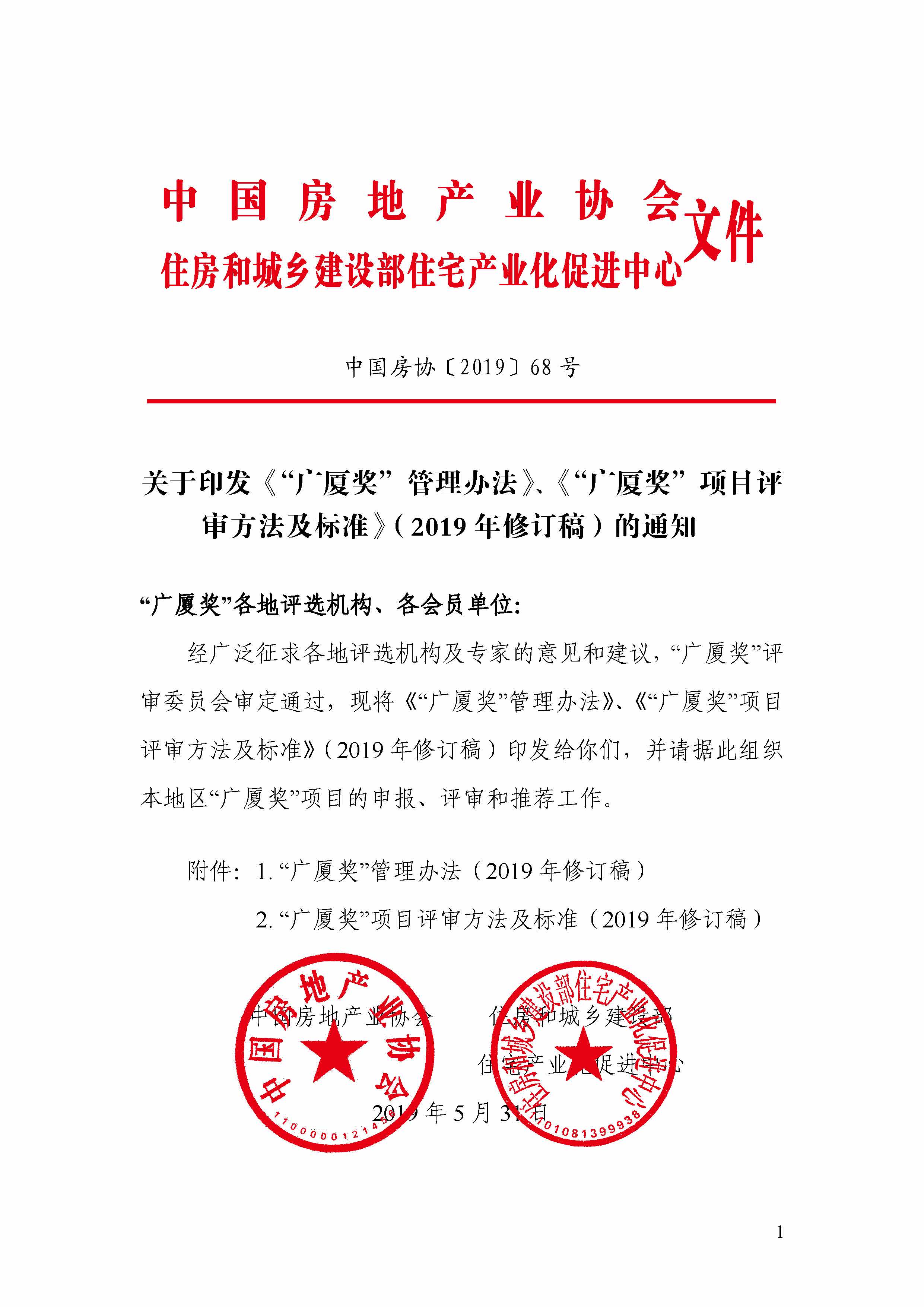 關(guān)于印發(fā)《“廣廈獎”管理辦法》、《“廣廈獎”項目評審方法及標準》(2019 年修訂稿)的通知