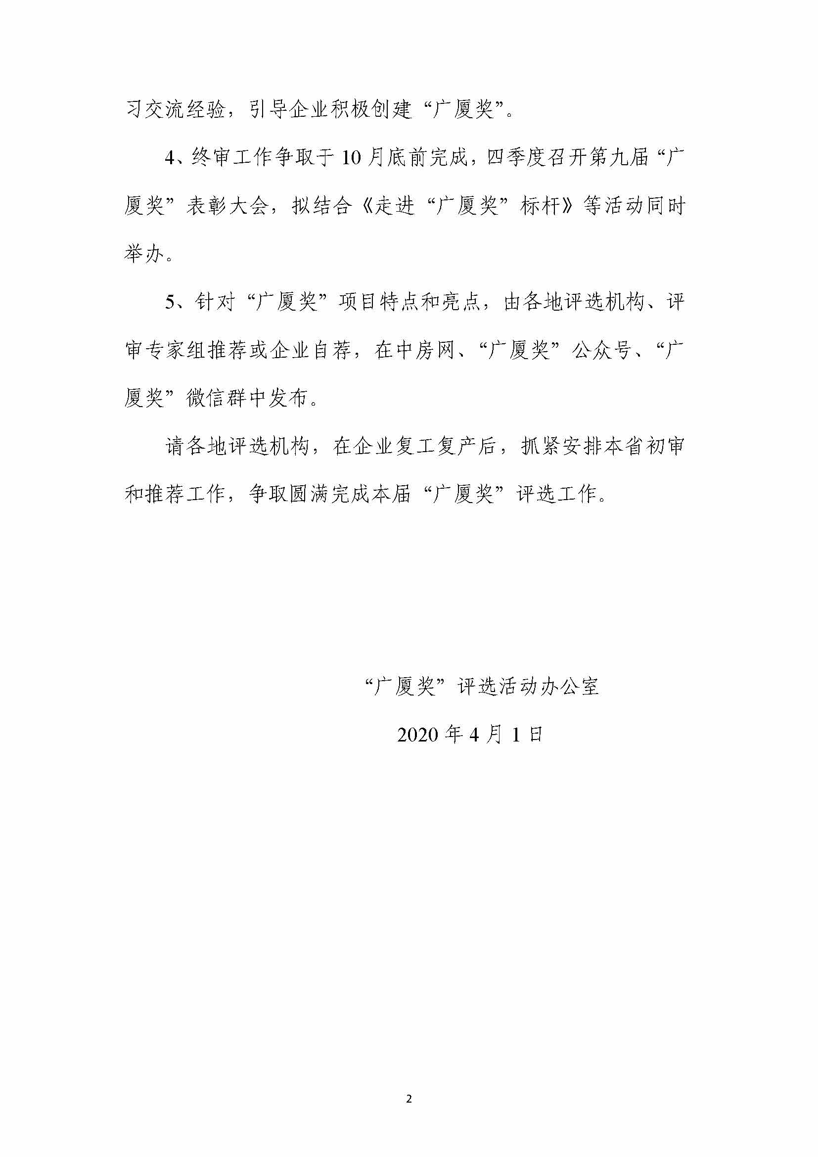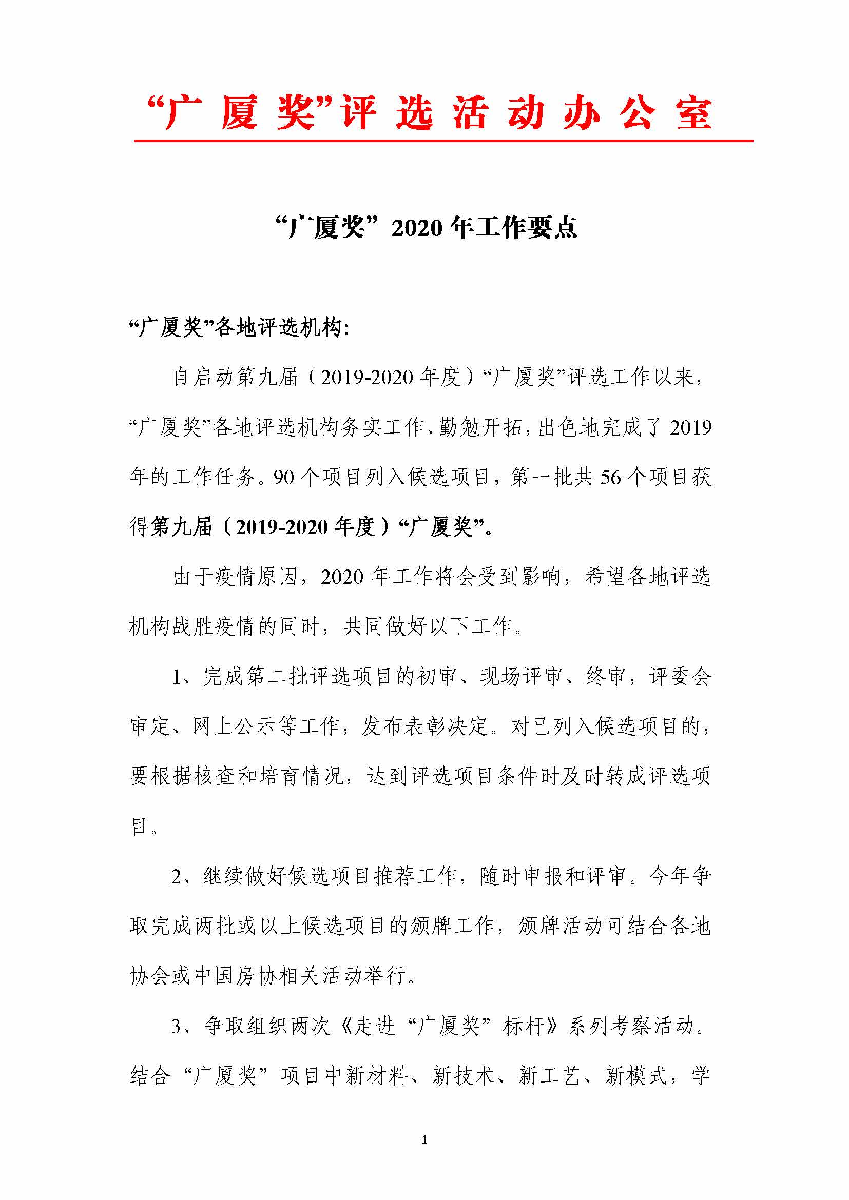 “廣廈獎(jiǎng)”2020年工作要點(diǎn)