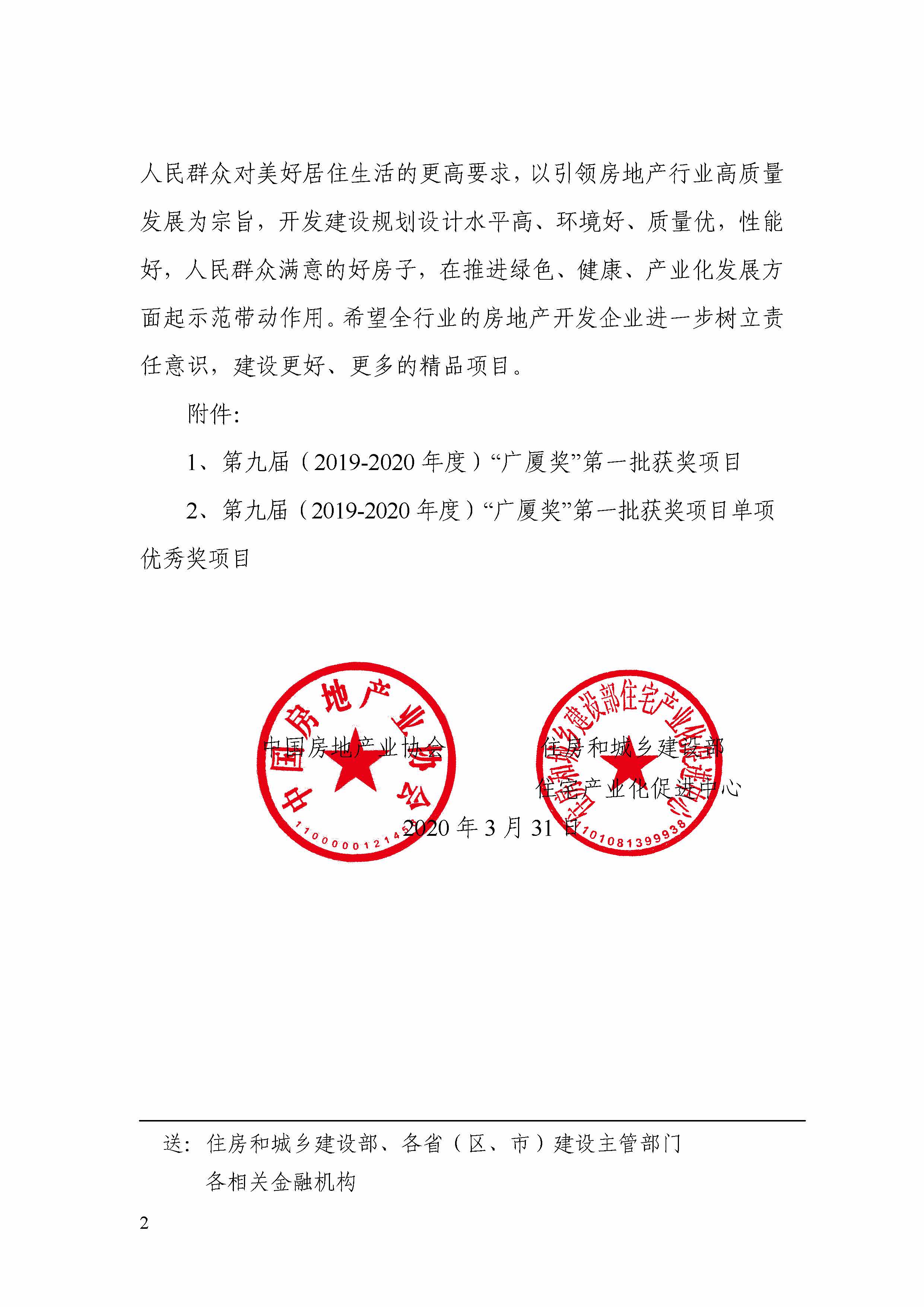 關(guān)于表彰第九屆(2019-2020 年度)“廣廈獎” 第一批獲獎項(xiàng)目的通報(bào)
