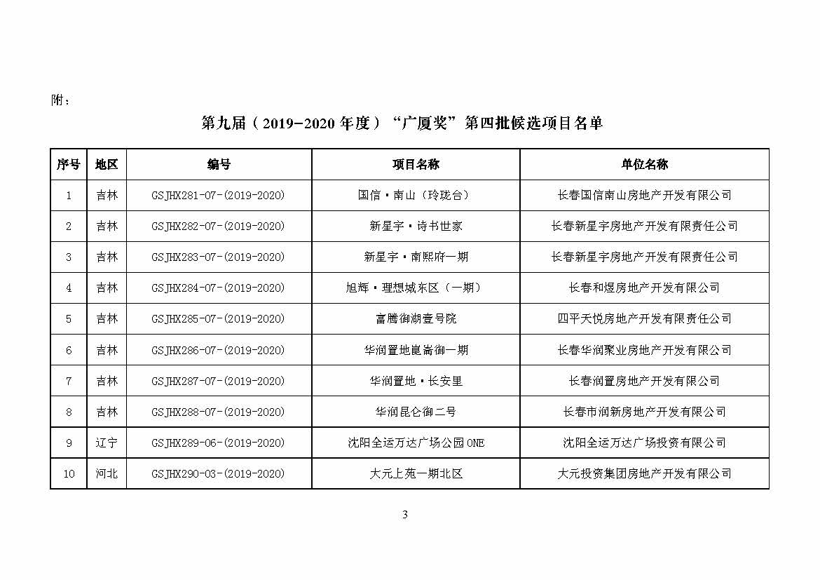 關于列入第九屆(2019-2020 年度)“廣廈獎”第四批候選項目的通報
