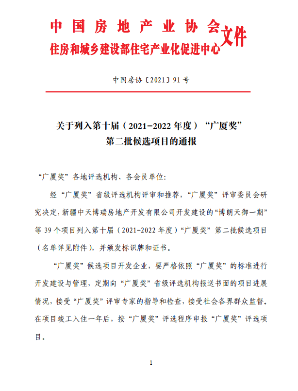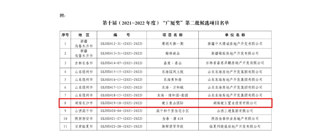 8月2日,由中國房地產(chǎn)業(yè)協(xié)會(huì)、住房和城鄉(xiāng)建設(shè)部住宅產(chǎn)業(yè)化促進(jìn)中心共同組織的第十屆(2021-2022年度) “廣廈獎(jiǎng)”第二批候選項(xiàng)目名單重磅出爐,全國共有39個(gè)項(xiàng)目入圍。其中,經(jīng)湖南省房地產(chǎn)業(yè)協(xié)會(huì)推薦,會(huì)長(zhǎng)單位建工集團(tuán)湖南建工置業(yè)投資有限公司打造的“建工象山國際”項(xiàng)目榮獲殊榮!