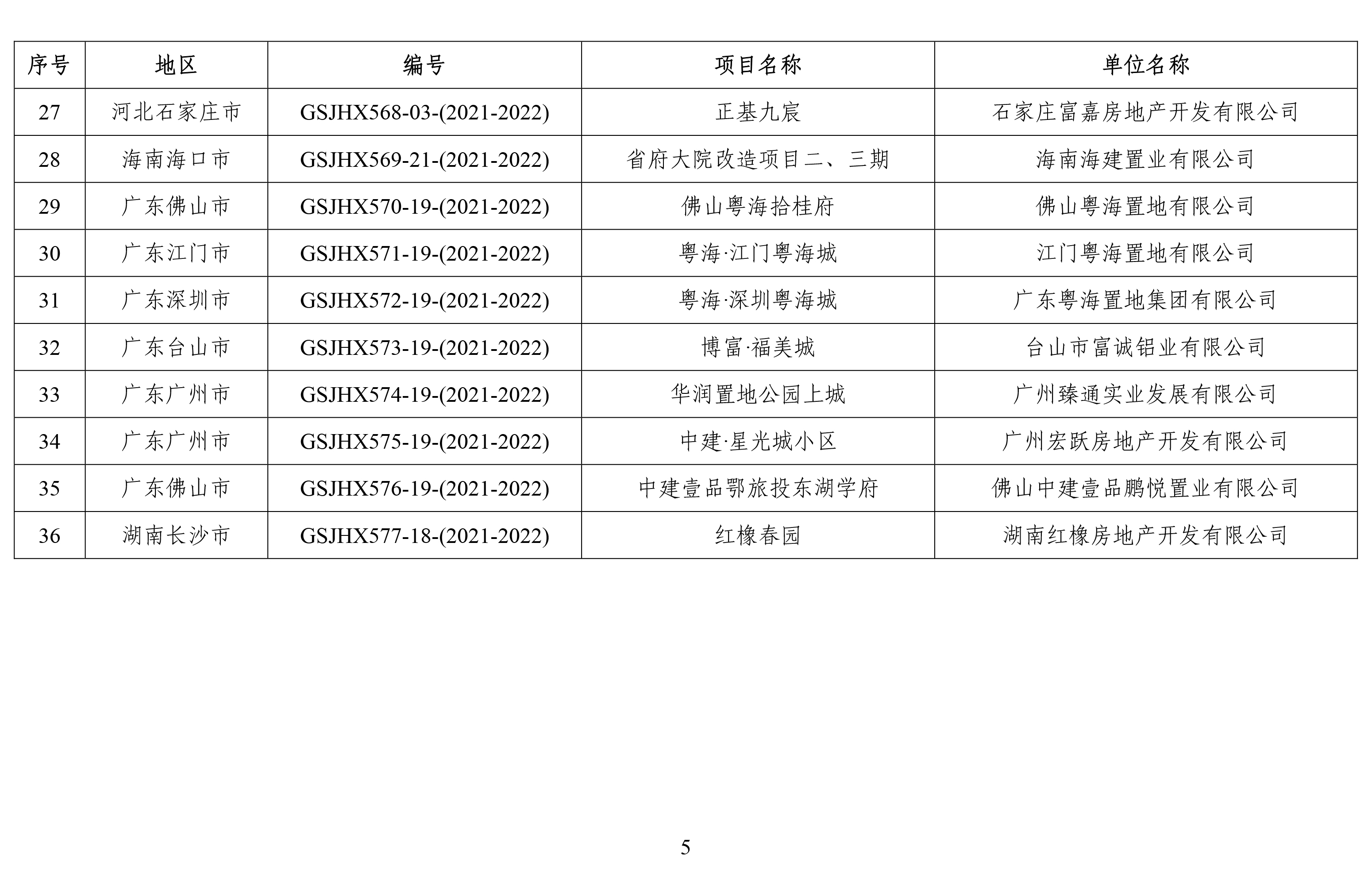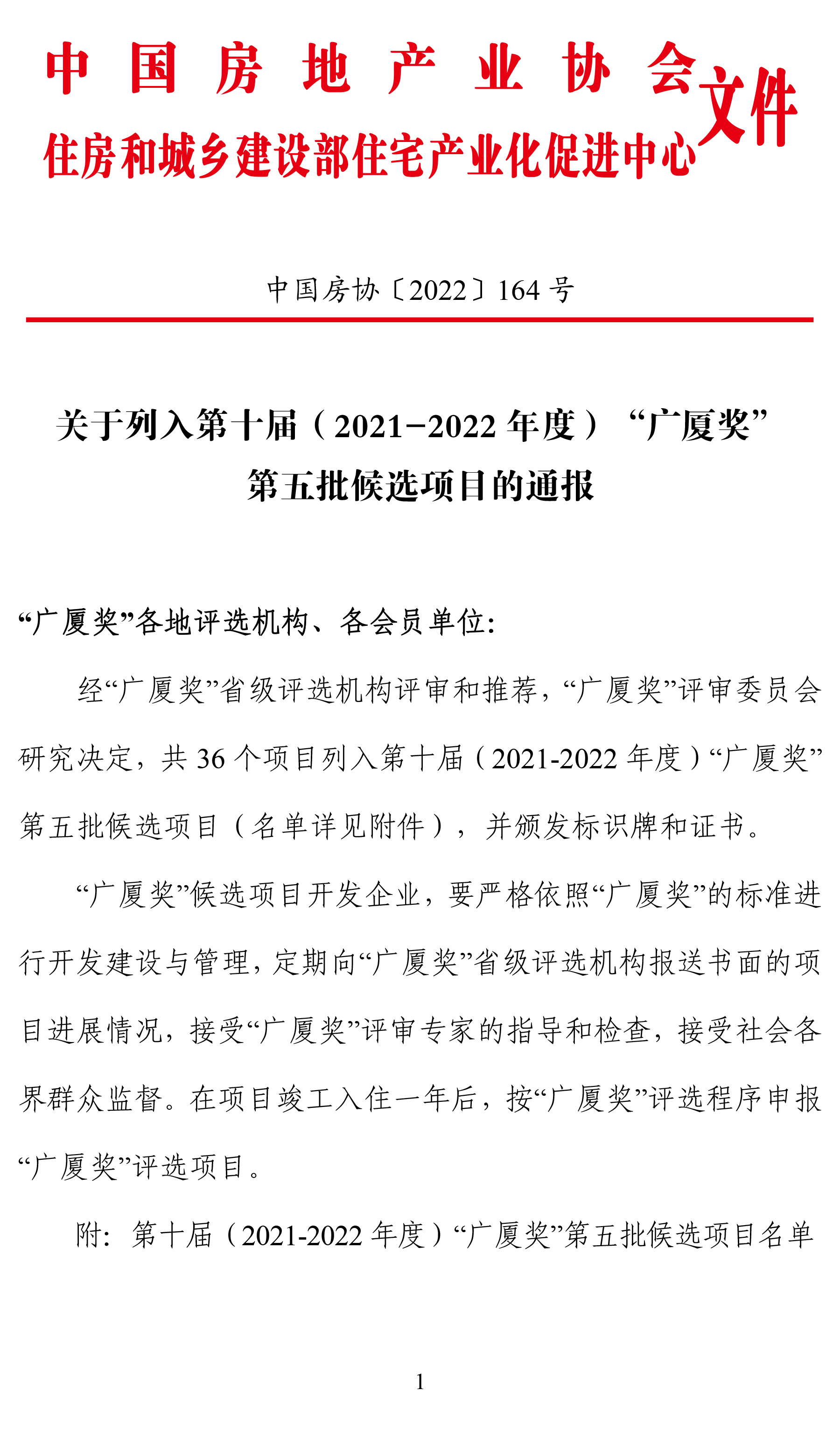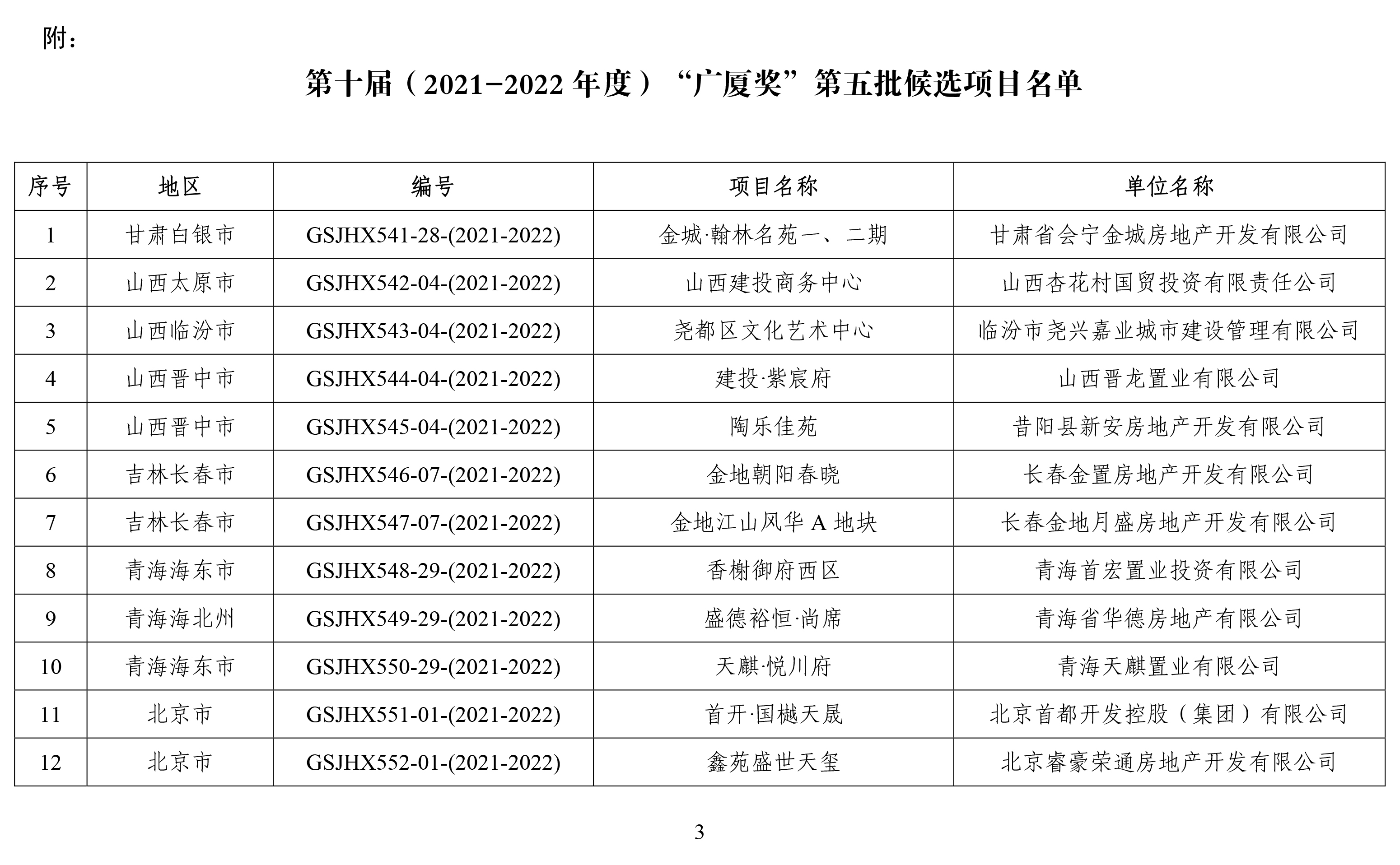 關(guān)于列入第十屆(2021-2022年度)“廣廈獎(jiǎng)”第五批候選項(xiàng)目的通報(bào)