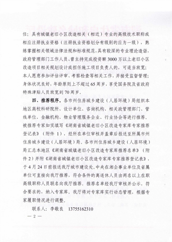 附件:《湖南省住房和城鄉(xiāng)建設廳關于推薦湖南省城鎮(zhèn)老舊小區(qū)改造專家的通知》