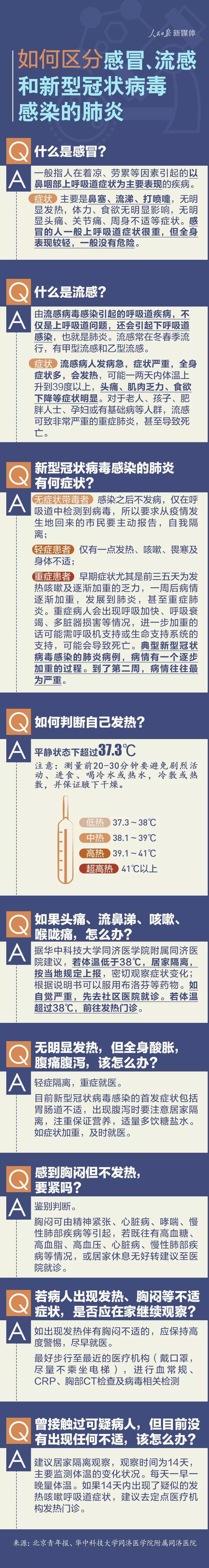 頭痛、流鼻涕、咳嗽、喉嚨痛怎么辦?如何判斷是否發(fā)熱?如何區(qū)分感冒流感和新型冠狀病毒感染的肺炎?一圖了解