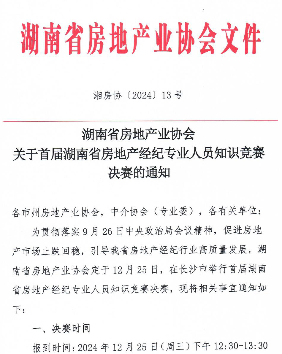 關(guān)于首屆湖南省房地產(chǎn)經(jīng)紀(jì)專(zhuān)業(yè)人員知識(shí)競(jìng)賽決賽的通知
